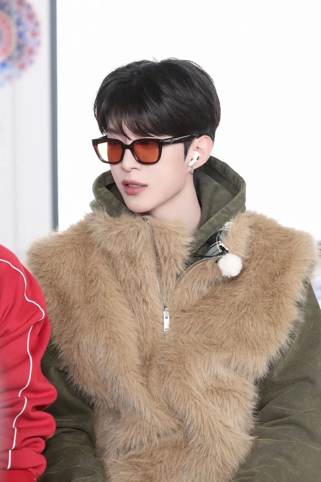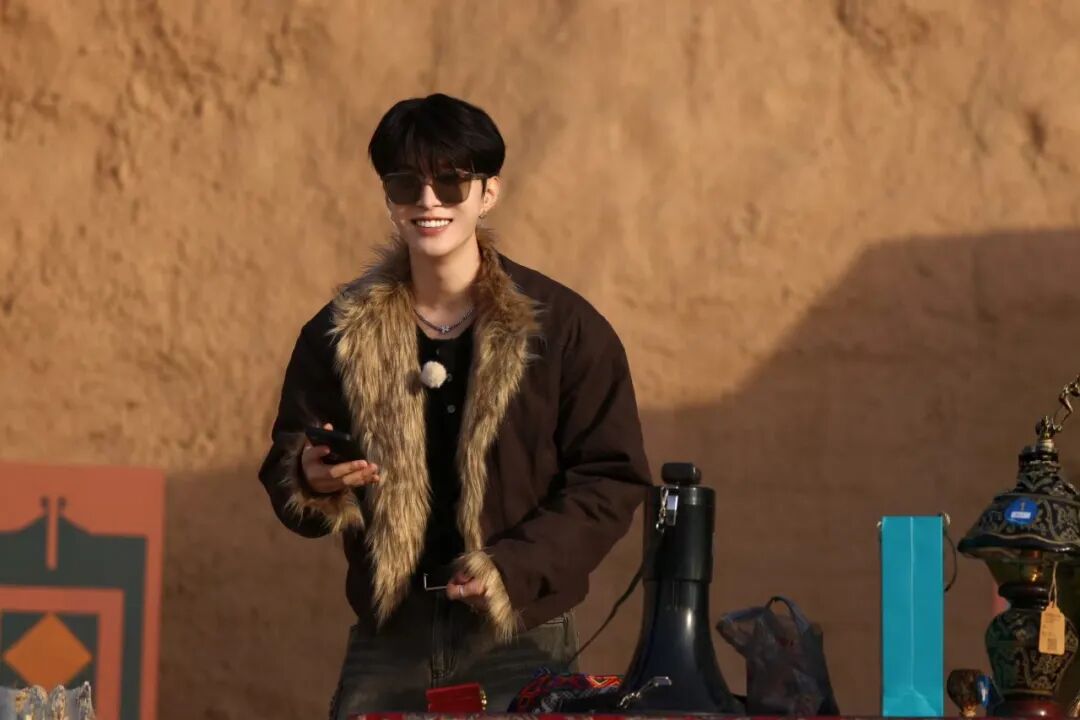 环保皮草作为今年冬天的大热单品,绝对不容小觑!范丞丞就经常用它搭配!卡其色的皮草马甲搭配泥炭藓绿色的卫衣,既展示了强大的颜色把控能力,同时也给人温和软糯的观感。