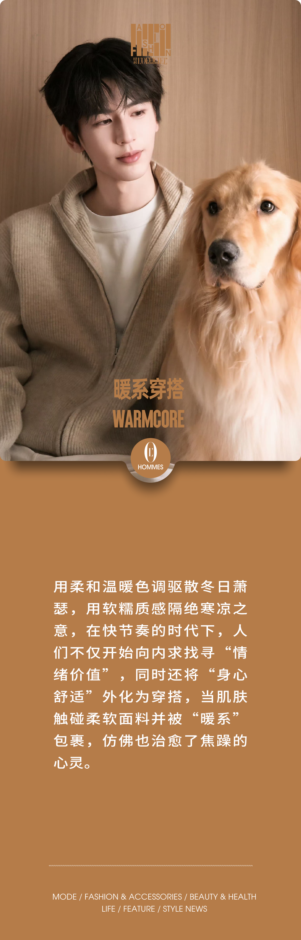 “被阳光亲吻”的温暖氛围成为这个冬季的穿搭顶流。视觉加热的“暖系穿搭”令人触摸到冬季的“反差温度”,用大地颜色构筑,用柔软材质感知,通过不同面料与治愈色系间的搭配,创造冬日最舒服的 Warmcore。