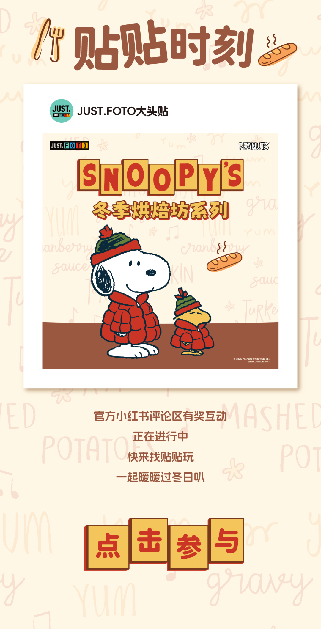 摘要:史努比大头贴冬季烘焙坊系列,全国开拍
