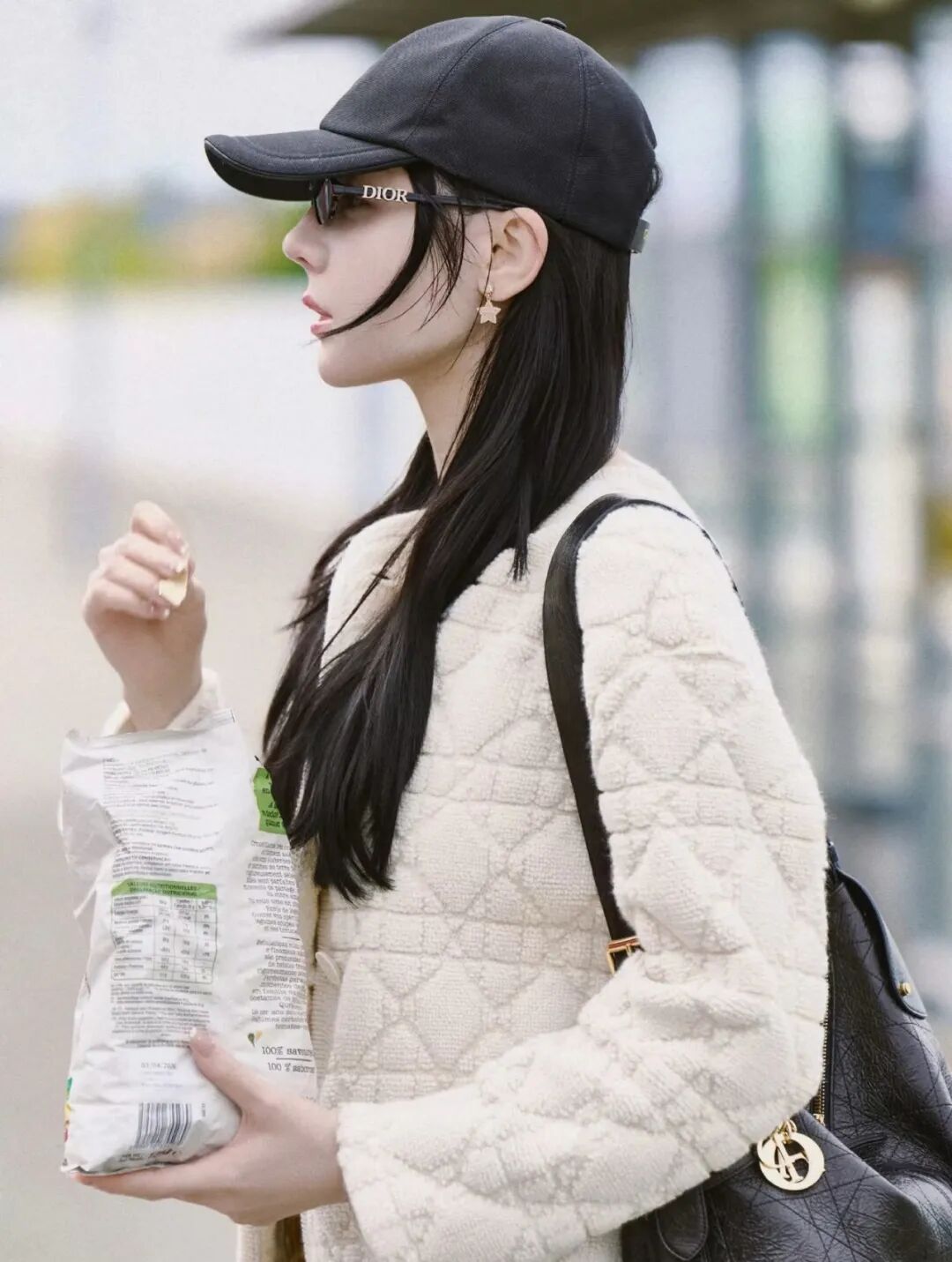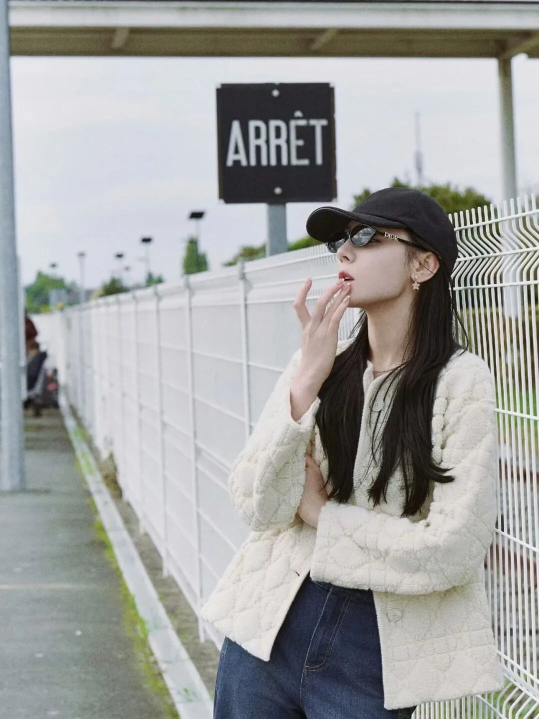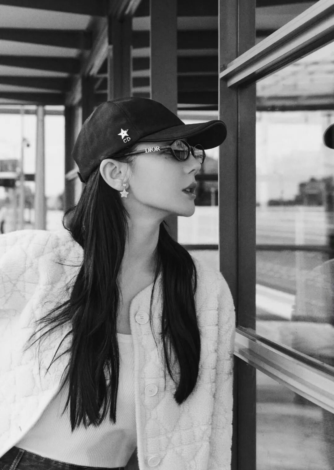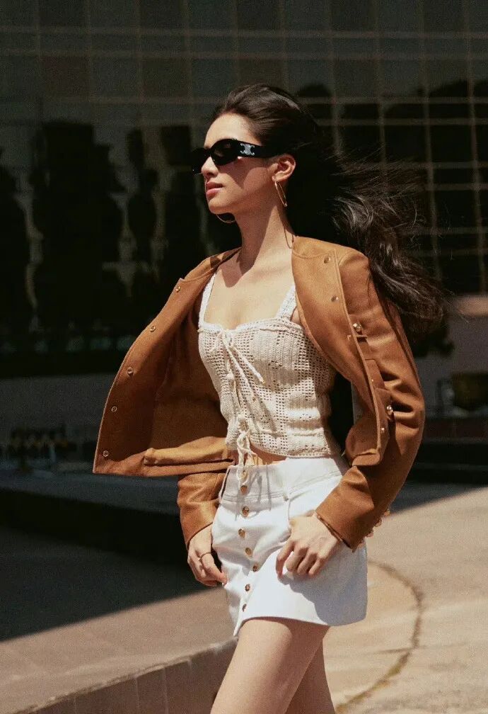 灰色镜片自带复古滤镜,而镜腿侧面点缀的Dior水钻,则成为了点睛之笔——它blingbling地闪耀,却丝毫不浮夸,恰似一种内敛的锋芒,于细节处诉说不凡品味。