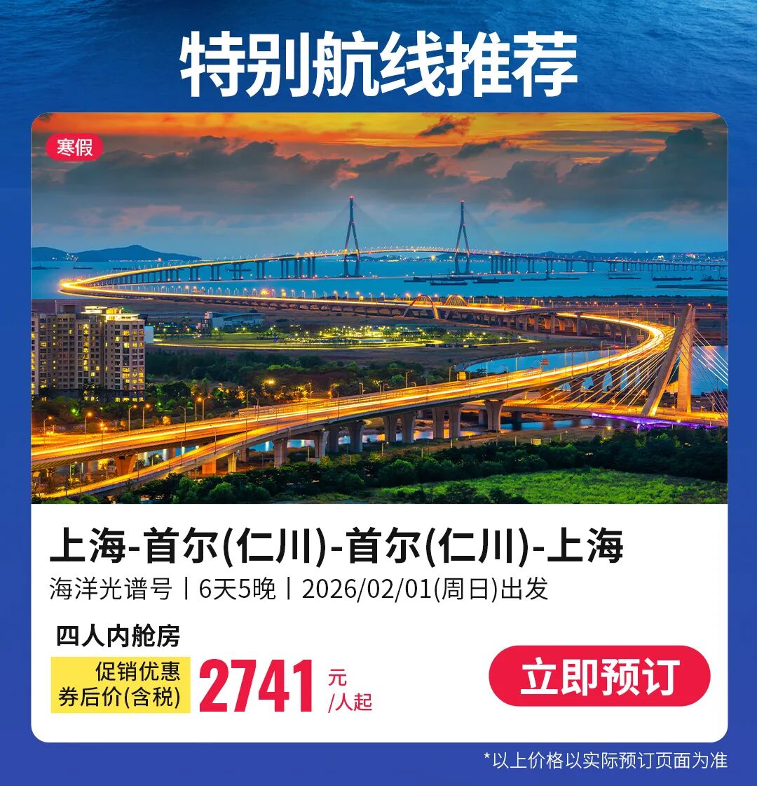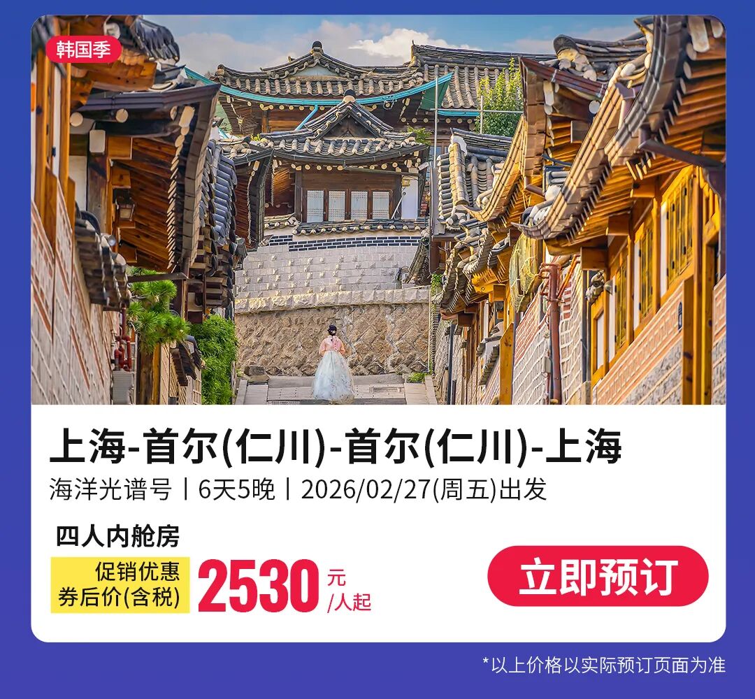 低至¥1831/人起免签出国,稀缺首尔过夜航次!两种路线各有精彩,嗨玩光谱号!