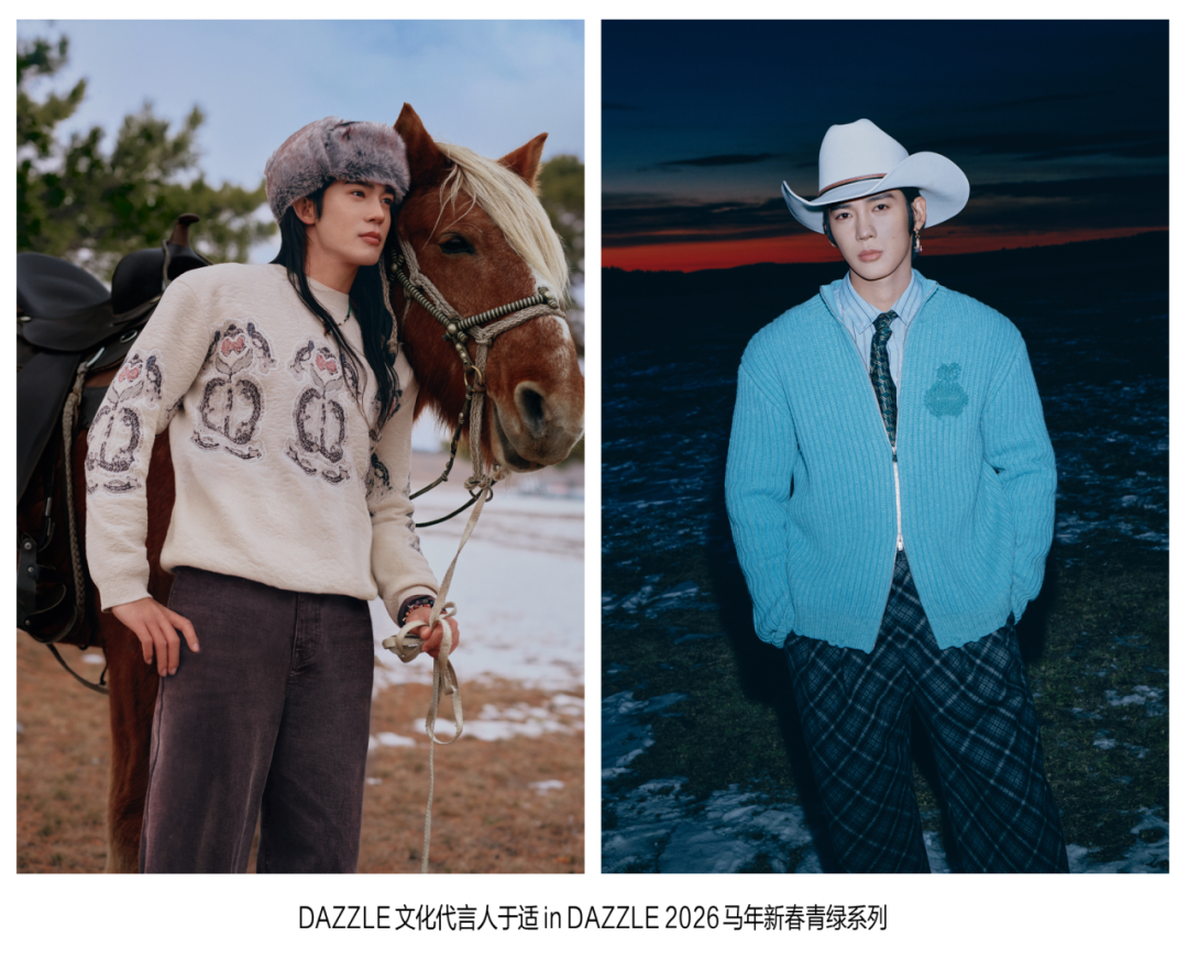 也正是在如此氛围之下,在冬季与新年交界之时,自然最冷而情感最热的时刻,DAZZLE正式发布全新2026马年新春青绿系列。