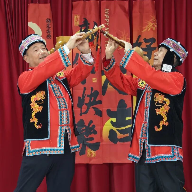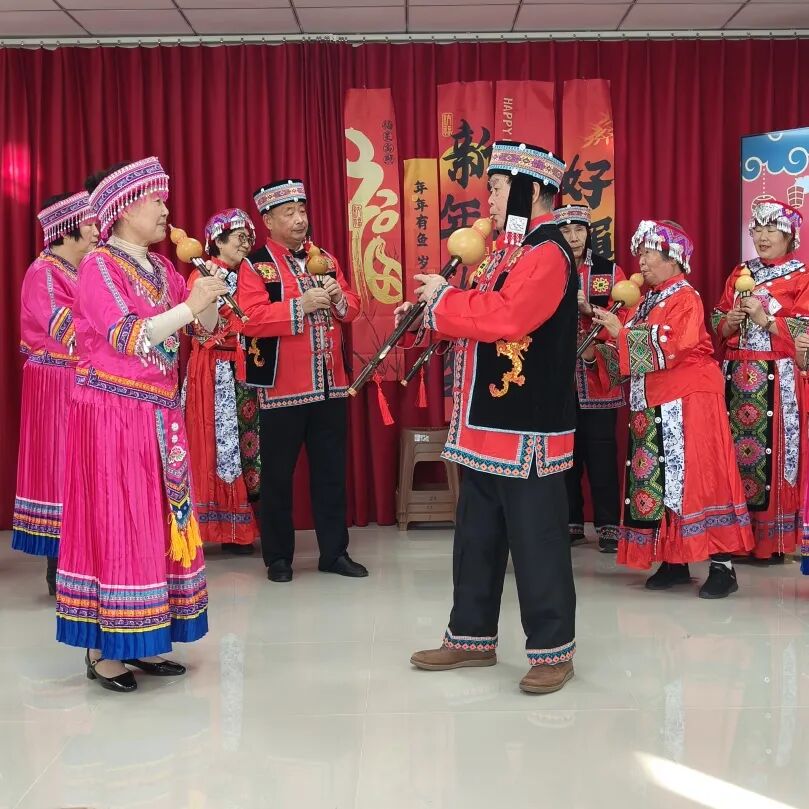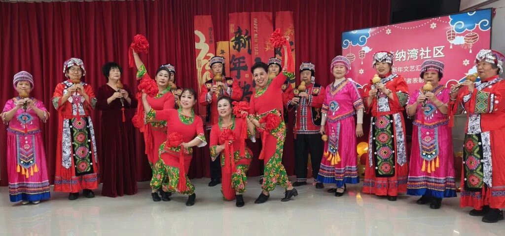 演出在葫芦丝社和纳湾舞社的合作节目《开门红》中拉开序幕,葫芦丝社的成员们喜庆洋洋的曲调搭配纳湾舞社灵动的舞姿,瞬间点燃了现场的喜庆氛围。