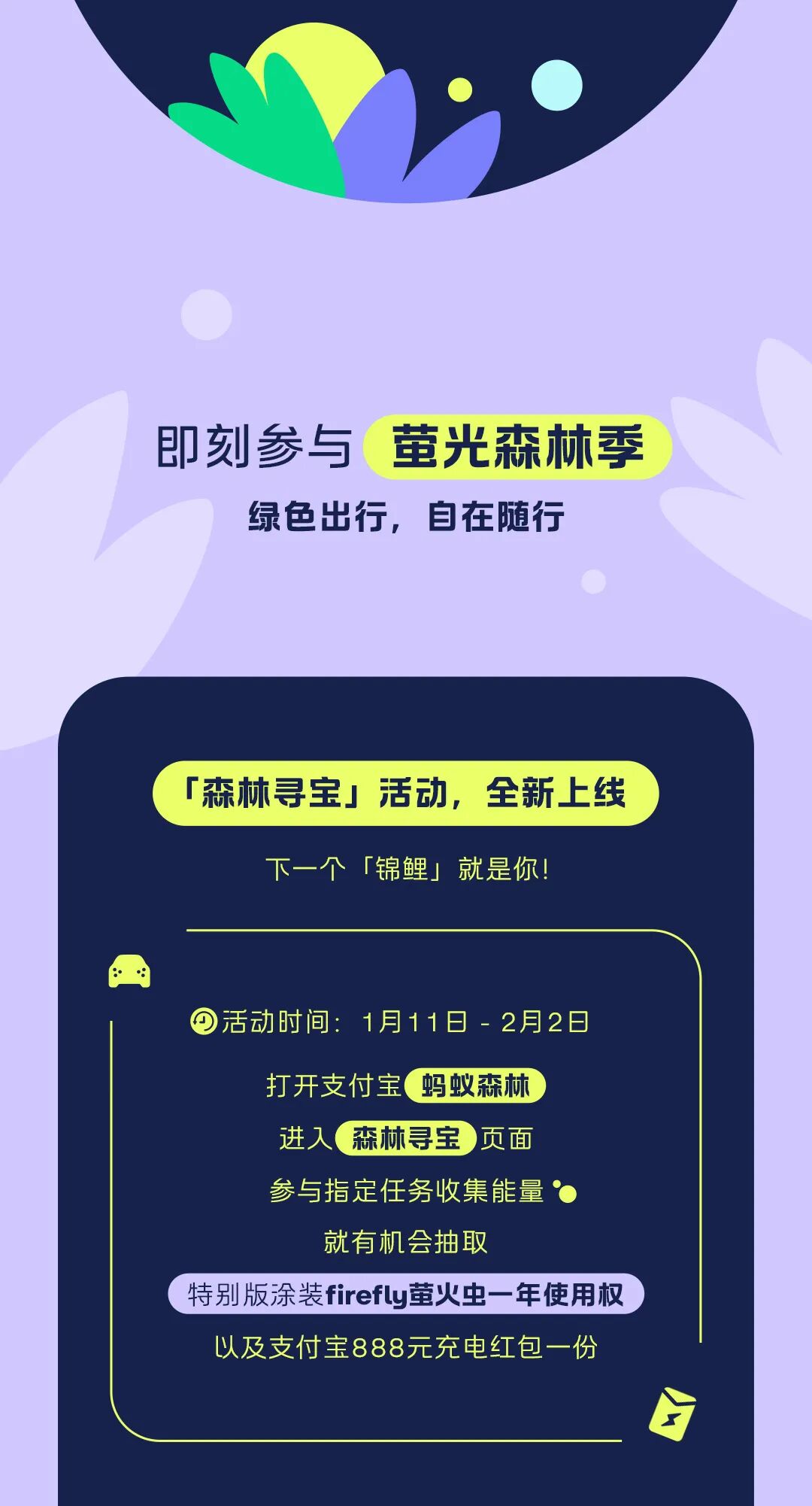 摘要:绿色出行,自在随行。即刻参与「萤光森林季」,让环保日常自在发光!