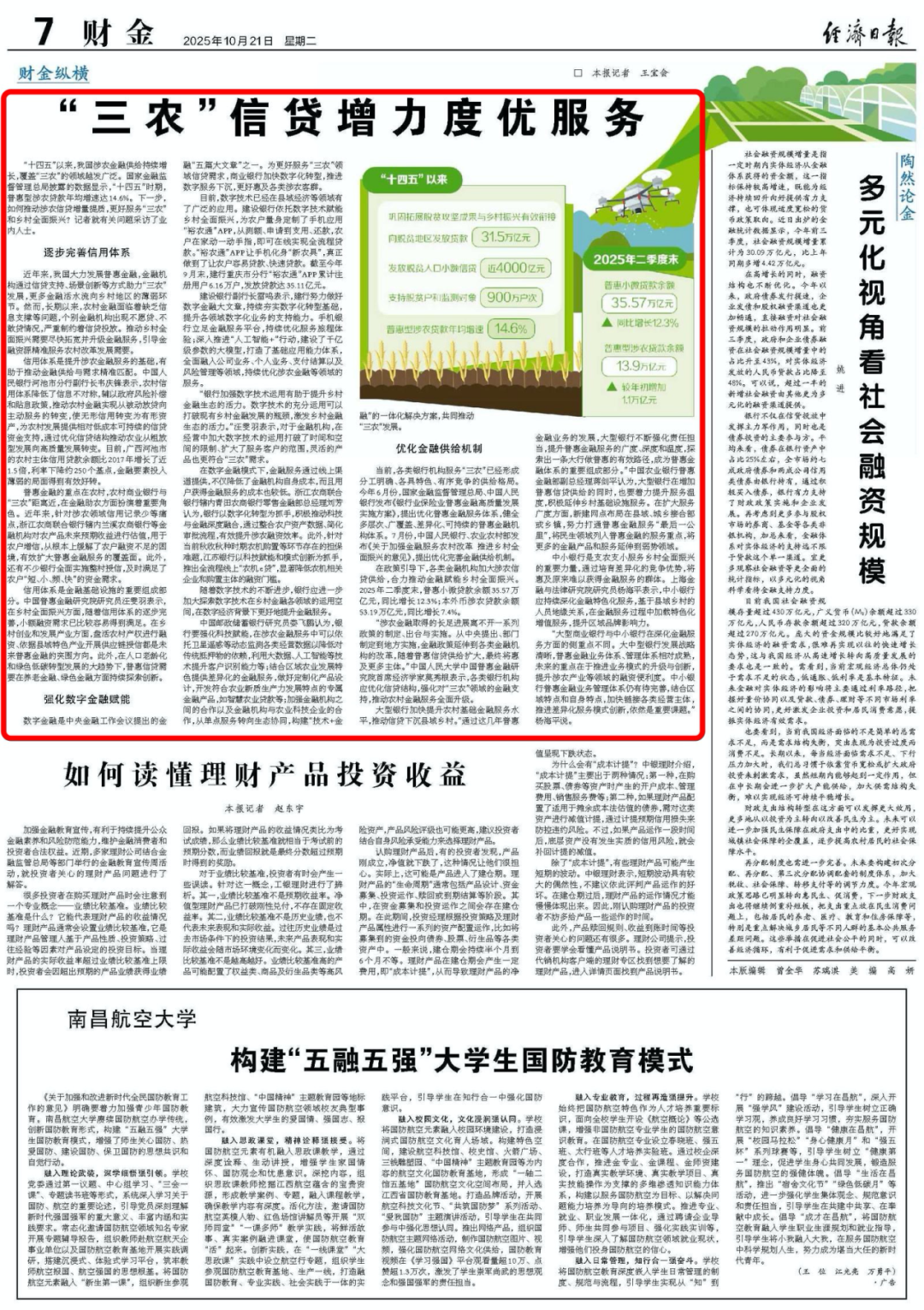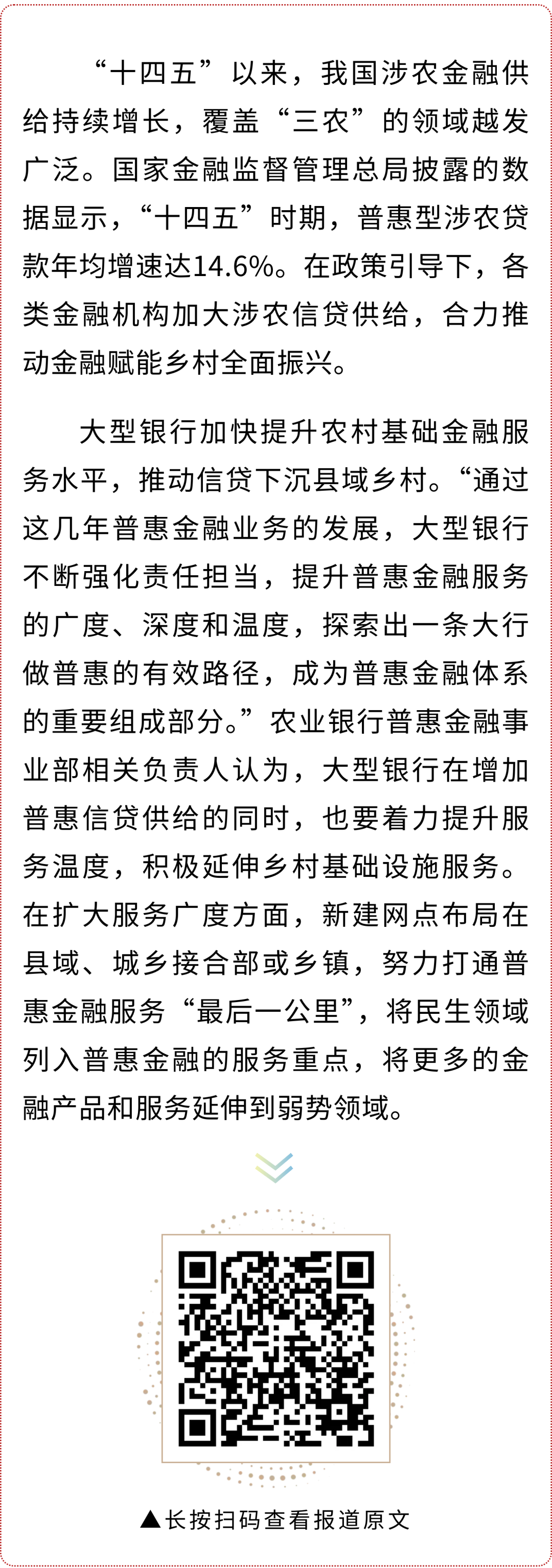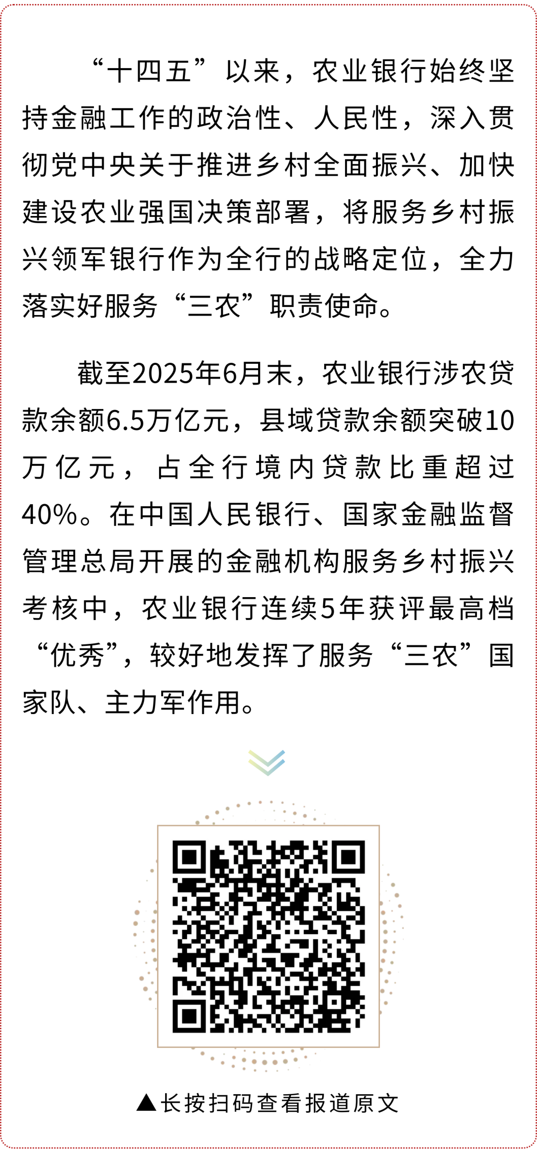 近日,中央广播电视总台、《经济日报》、《上海证券报》、《金融时报》、《中国银行保险报》、《中国银行业》杂志等多家媒体,报道“十四五”期间,农业银行积极推进“三农”普惠发展战略,以金融活水助力经济社会高质量发展的生动实践。