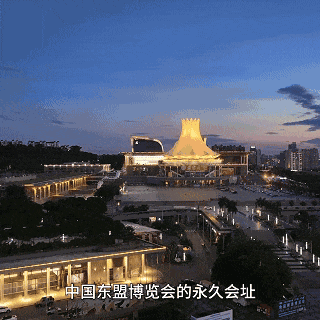 这里是南宁国际会展中心,中国东盟博览会的永久会址。一朵巨大的“朱槿花”正向着蓝天绽放,12片花瓣象征着广西12个民族,更承载着中国与东盟的万千商机。