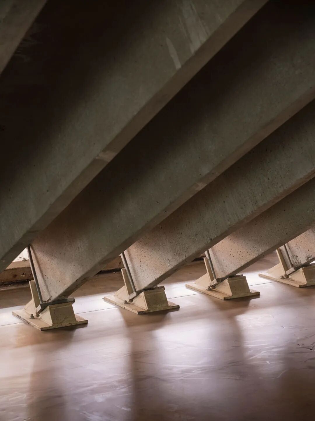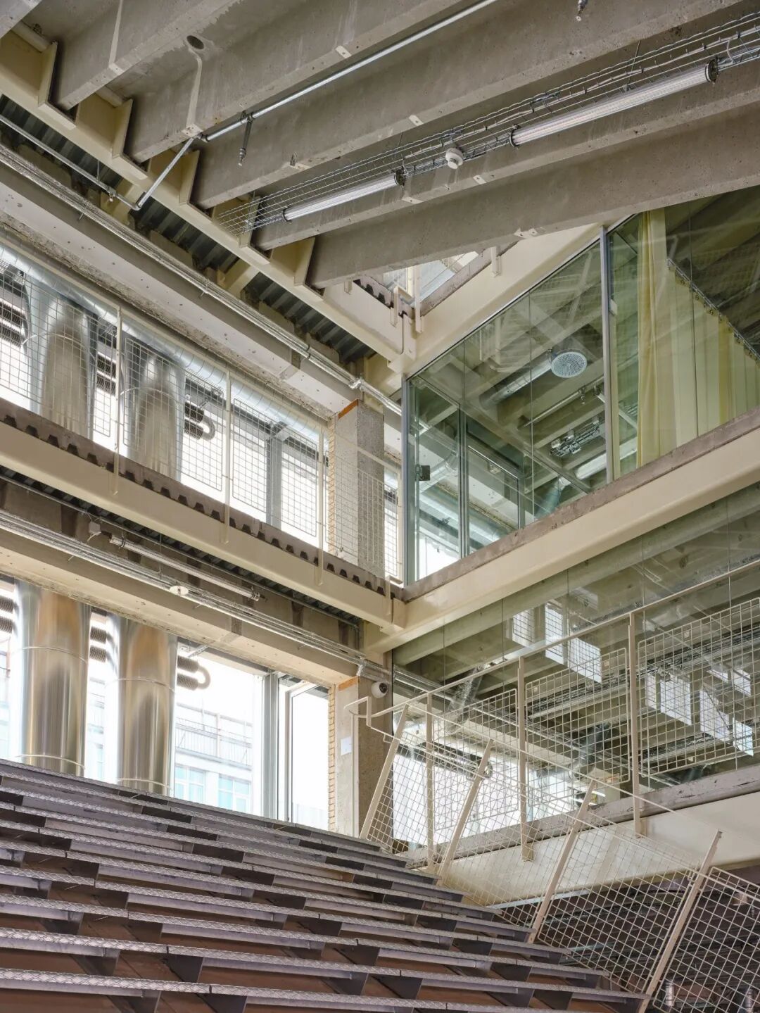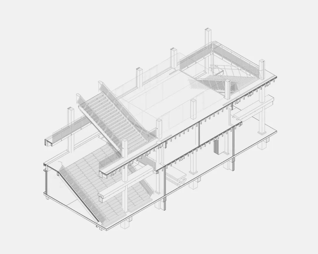 最初的工程评估显示荷载方案不可行,Pihlmann团队追溯至原始生产商,通过精确的历史数据了解材料性能,并为尺寸各异的楼板专门开发了特殊的连接件,以在新的角度下维持其力学完整性。Pihlmann说道:“当一块楼板被移除,它就成了一个独立的元素。我们不是强迫它适应我们的需求,而是去适应它,它决定了我们的决策。”