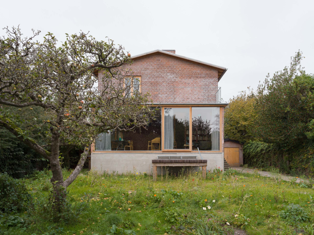 设计师在南侧House 14a立面进行扩建,并调整了窗户的位置和尺寸。弧形拱券仍保留了原有洞口的痕迹。图片来源:©Hampus Berndtson