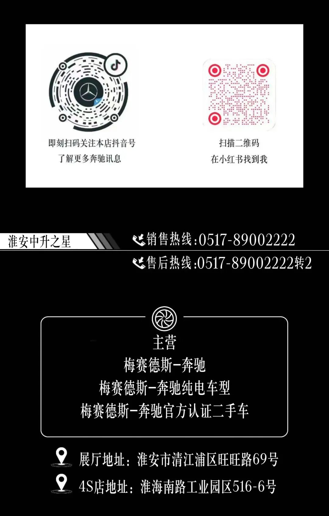 文章内容来源于公众号:奔驰淮安中升之星,点此可查看原文,内容版权归相关企业所有,本网站仅供交流学习。若涉及版权问题或存在侵权情况,请及时与我们联系,我们将第一时间进行删除处理。