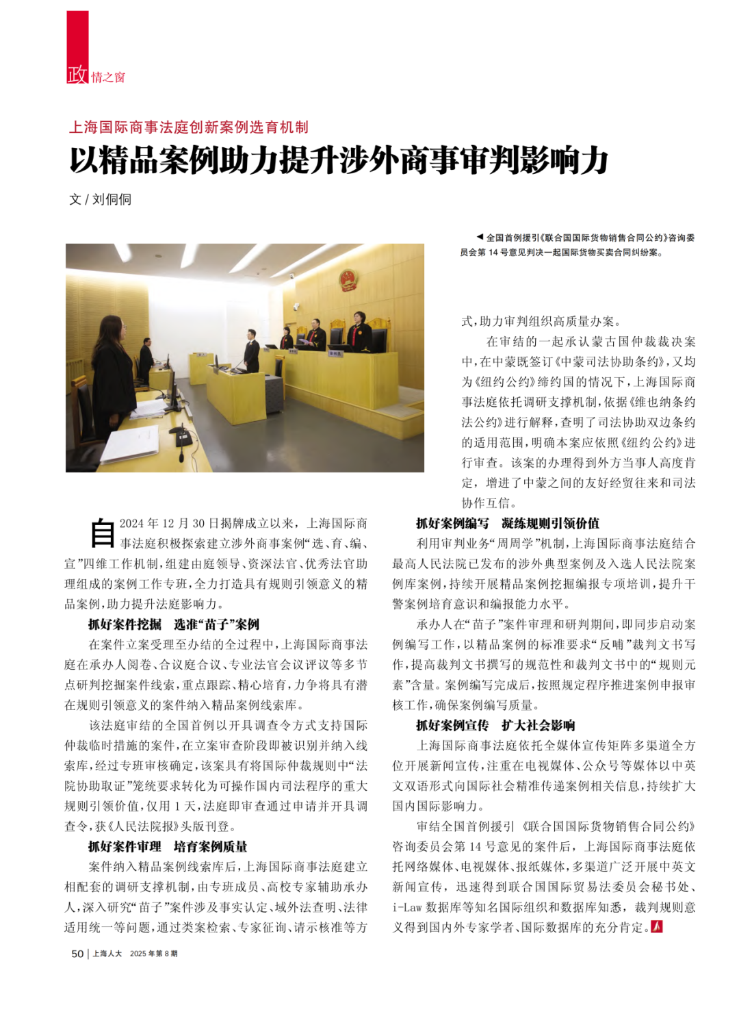 前期,《上海人大月刊》就上海国际商事法庭积极探索建立涉外商事案例“选、育、编、宣”四维工作机制,组建案例工作专班,打造精品案例助力提升审判影响力进行报道并刊发,现全文转发如下。