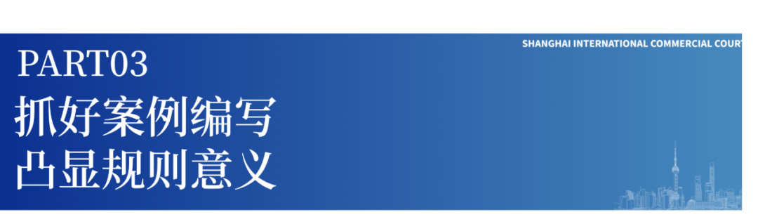 在案件立案受理至办结的全过程中,上海国际商事法庭在承办人阅卷、合议庭合议、专业法官会议评议等多节点研判挖掘案件线索,重点跟踪、精心培育,力争将具有潜在规则引领意义的案件纳入精品案例线索库。