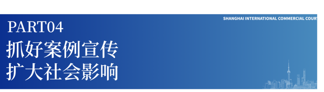 上海国际商事法庭依托全媒体宣传矩阵多渠道全方位开展新闻宣传,注重在电视媒体、公众号等媒体以中英文双语形式向国际社会精准传递案例相关信息,持续扩大国内国际影响力。