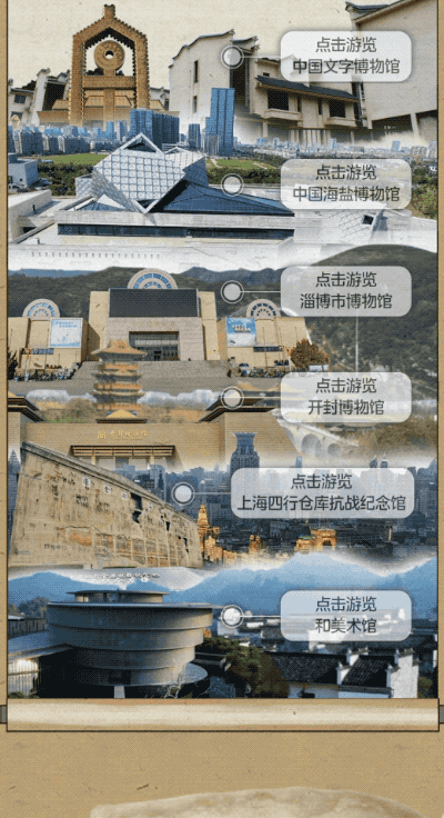 在一幅卷轴画面中,美的集团设计了多个「点击消失展开」效果用于介绍博物馆,每个展开上下之间又互有重叠,空间感和历史感全都有了。