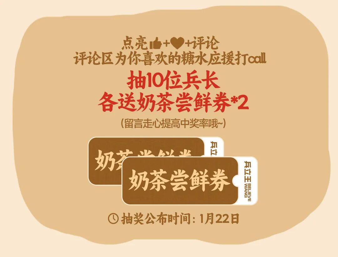 文章内容来源于公众号:兵立王鲜果茶奶茶,点此可查看原文,内容版权归相关企业所有,本网站仅供交流学习。若涉及版权问题或存在侵权情况,请及时与我们联系,我们将第一时间进行删除处理。