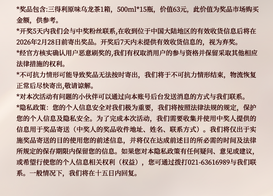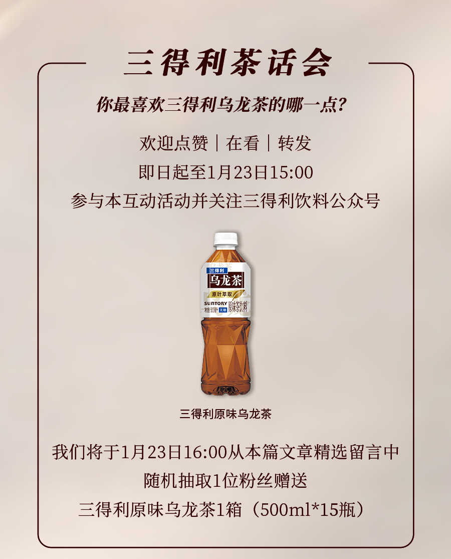 文章内容来源于公众号:三得利饮料,点此可查看原文,内容版权归相关企业所有,本网站仅供交流学习。若涉及版权问题或存在侵权情况,请及时与我们联系,我们将第一时间进行删除处理。