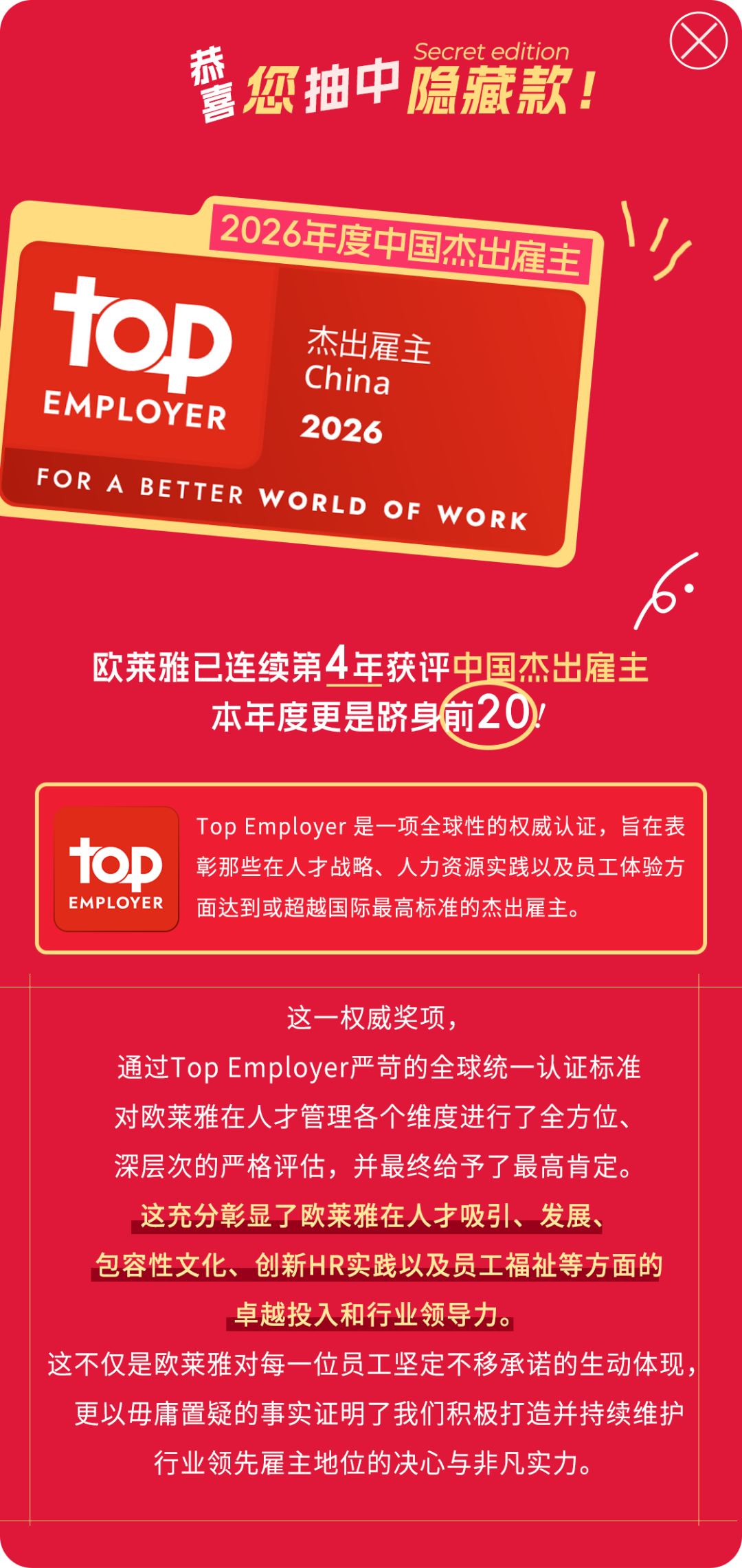四年蝉联Top Employer,今年我们首次跻身前20!并斩获多项雇主殊荣