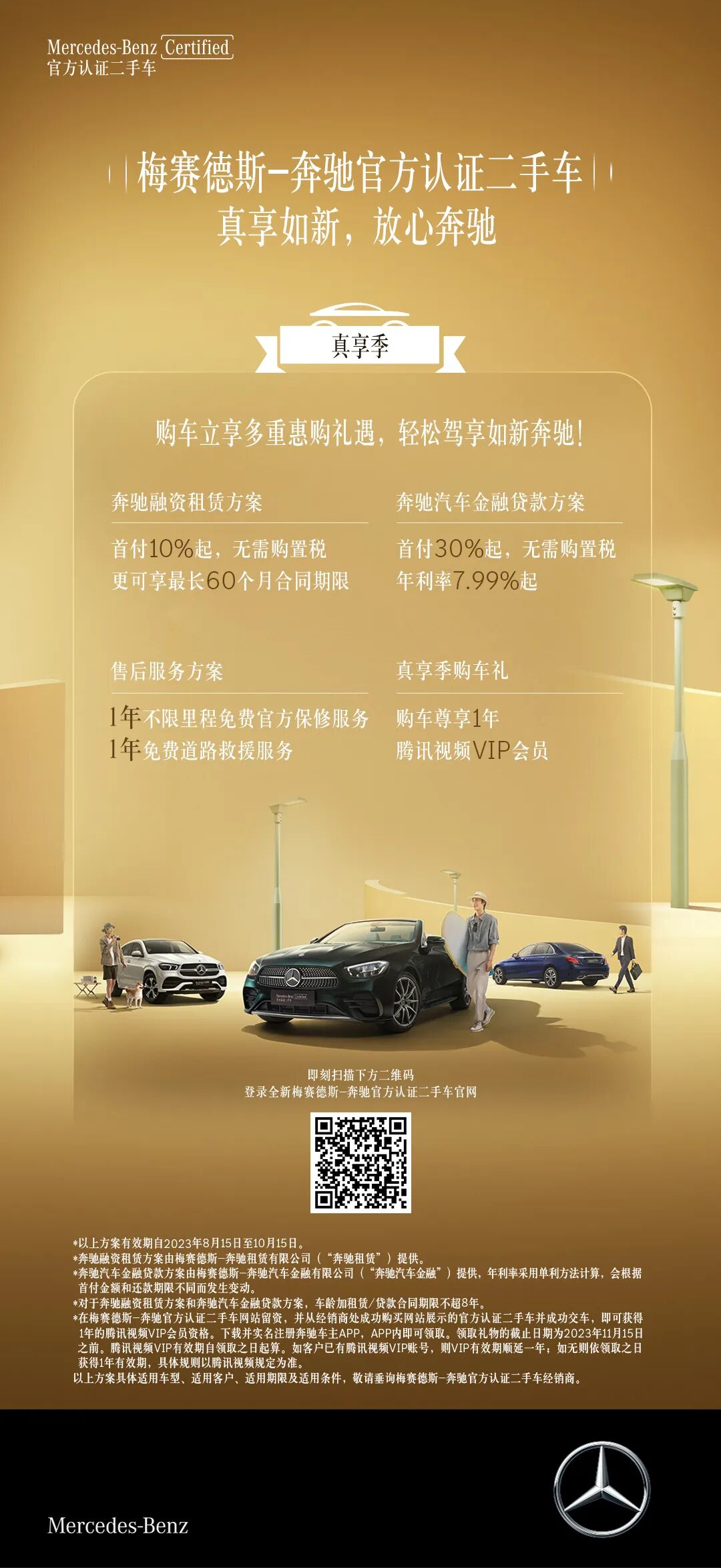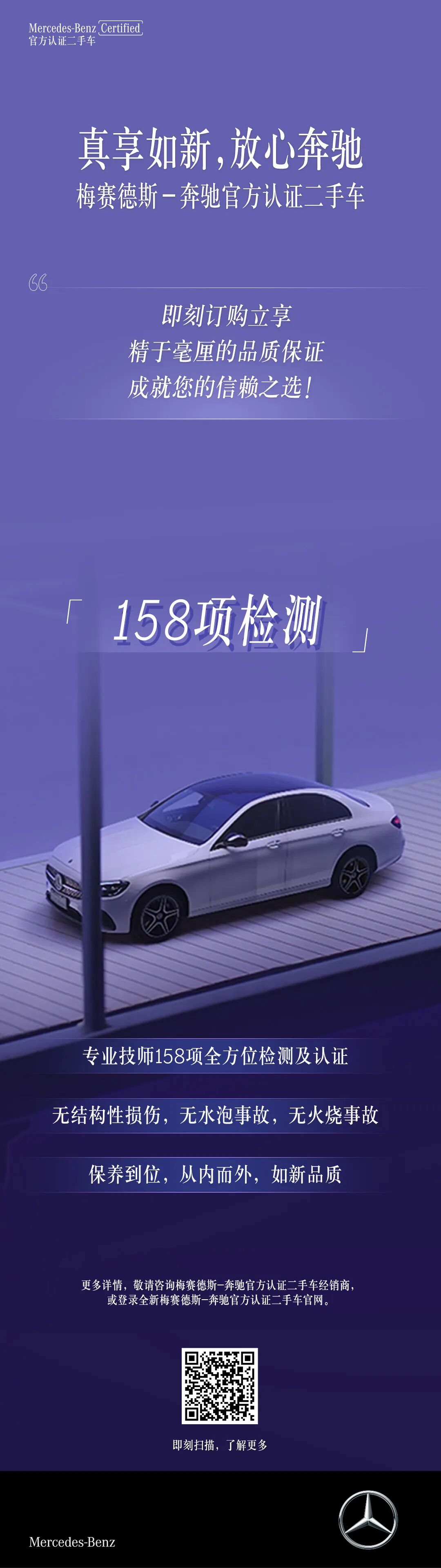 梅赛德斯-奔驰官方认证二手车以多元的生活方式,持打造“新豪华主义”的产品体验及“心豪华主义”的服务体验,以一站式的数字化解决方案提供二手车买、卖、置换领域的更好选择。