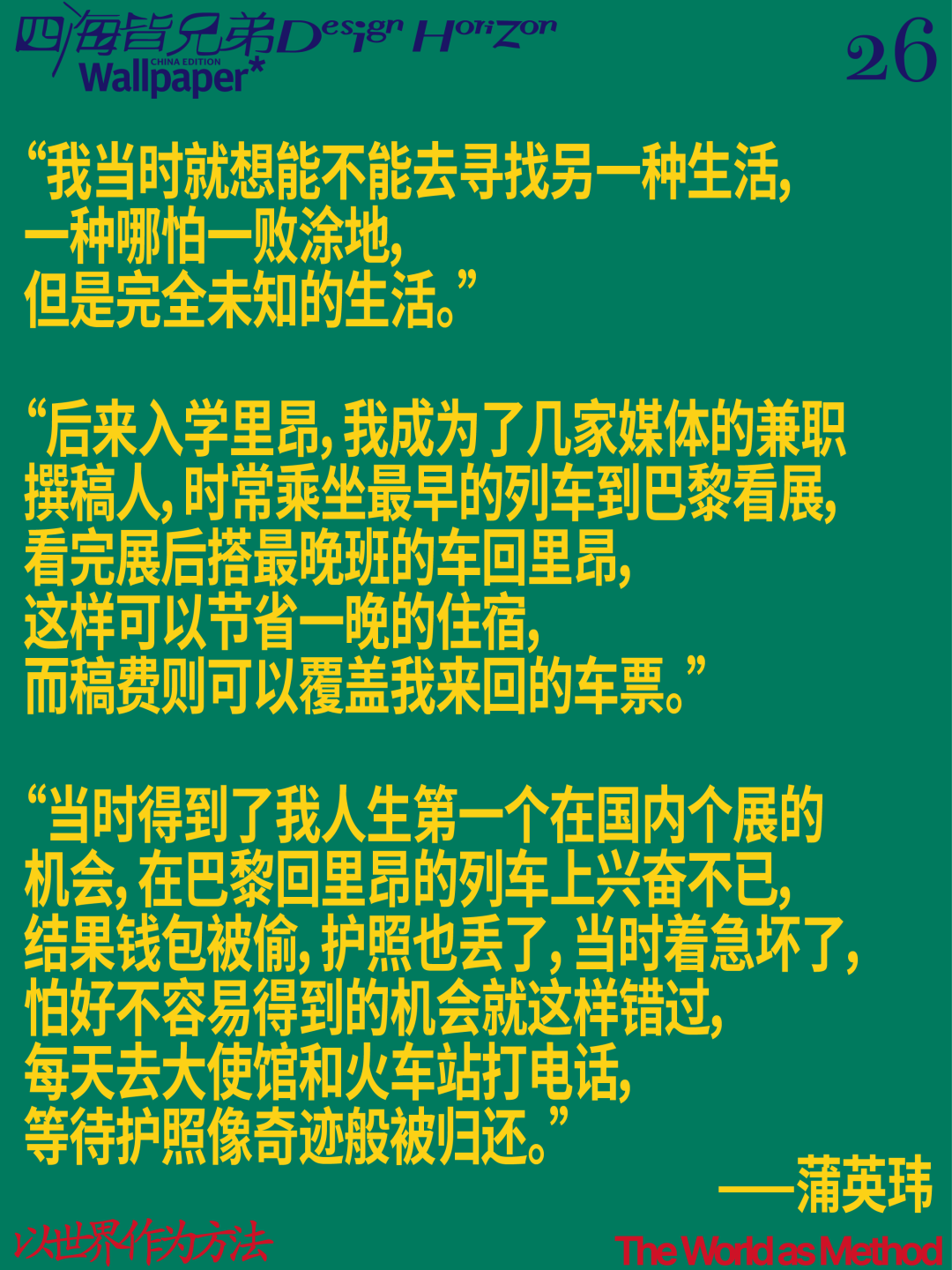 像少年Toguo一般,蒲英玮在完成了川美本科的传统绘画学习后,也参与到了法国的思想和展览史中,当年的“大地魔术师”、“关系美学”作为文献研究的方式进入到了蒲英玮早期的留法学习当中。在日常的学习中,蒲英玮经常与同学驱车前往格勒诺布尔看展,以隐秘的方式与当年的Toguo发生着对话。
