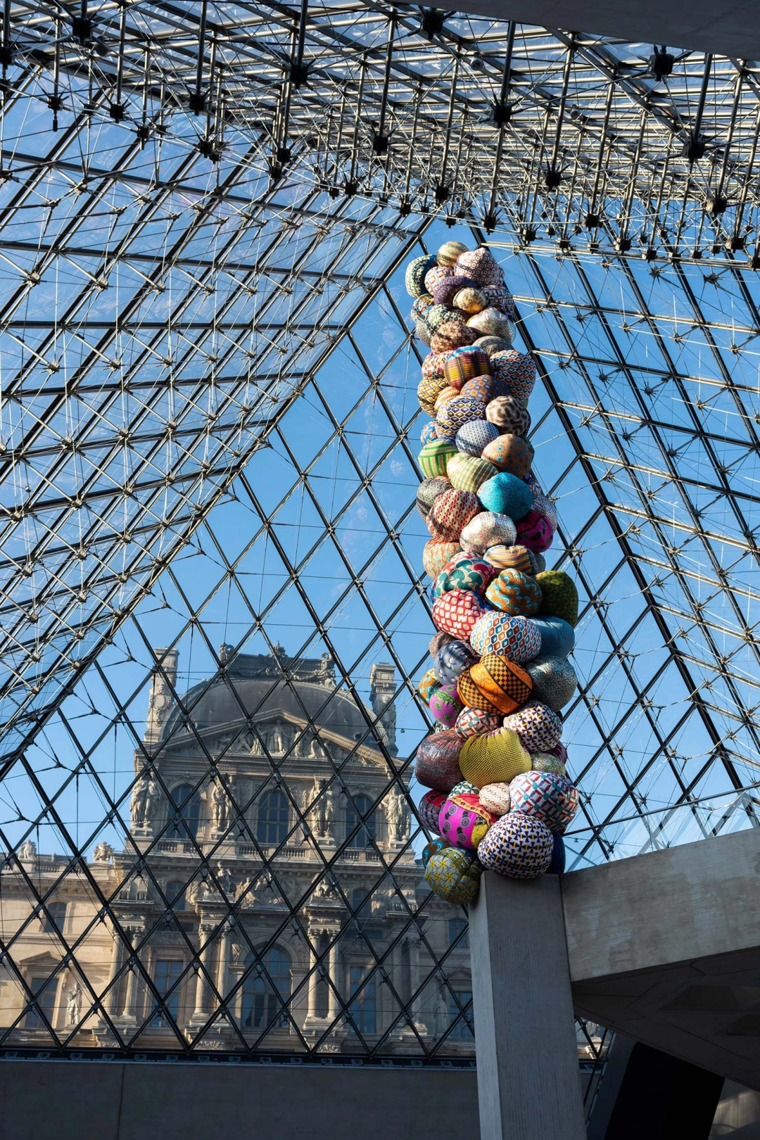 Barthélémy Toguo,《迷失移民之柱》(Le Pilier des migrants disparus),“静止的物体:静物画从古至今”展览现场,卢浮宫博物馆,2022