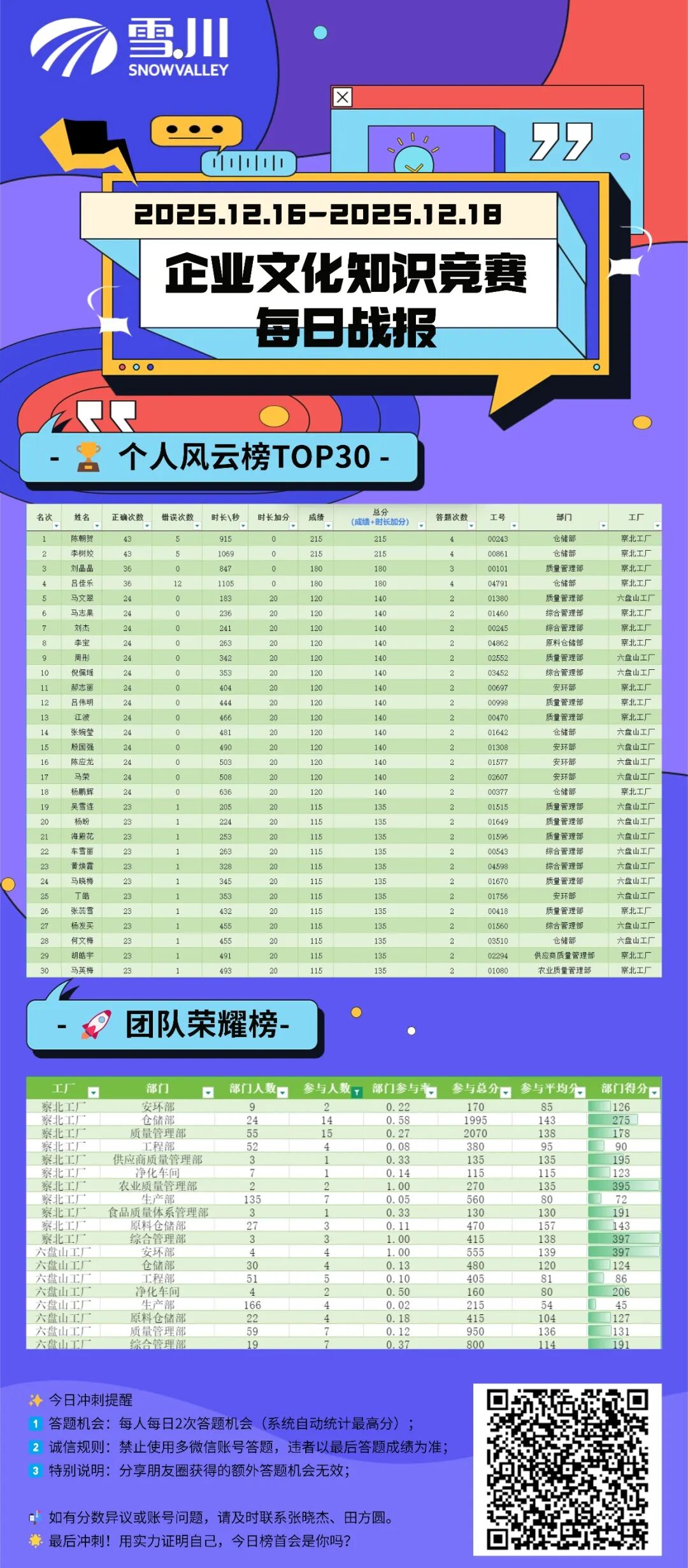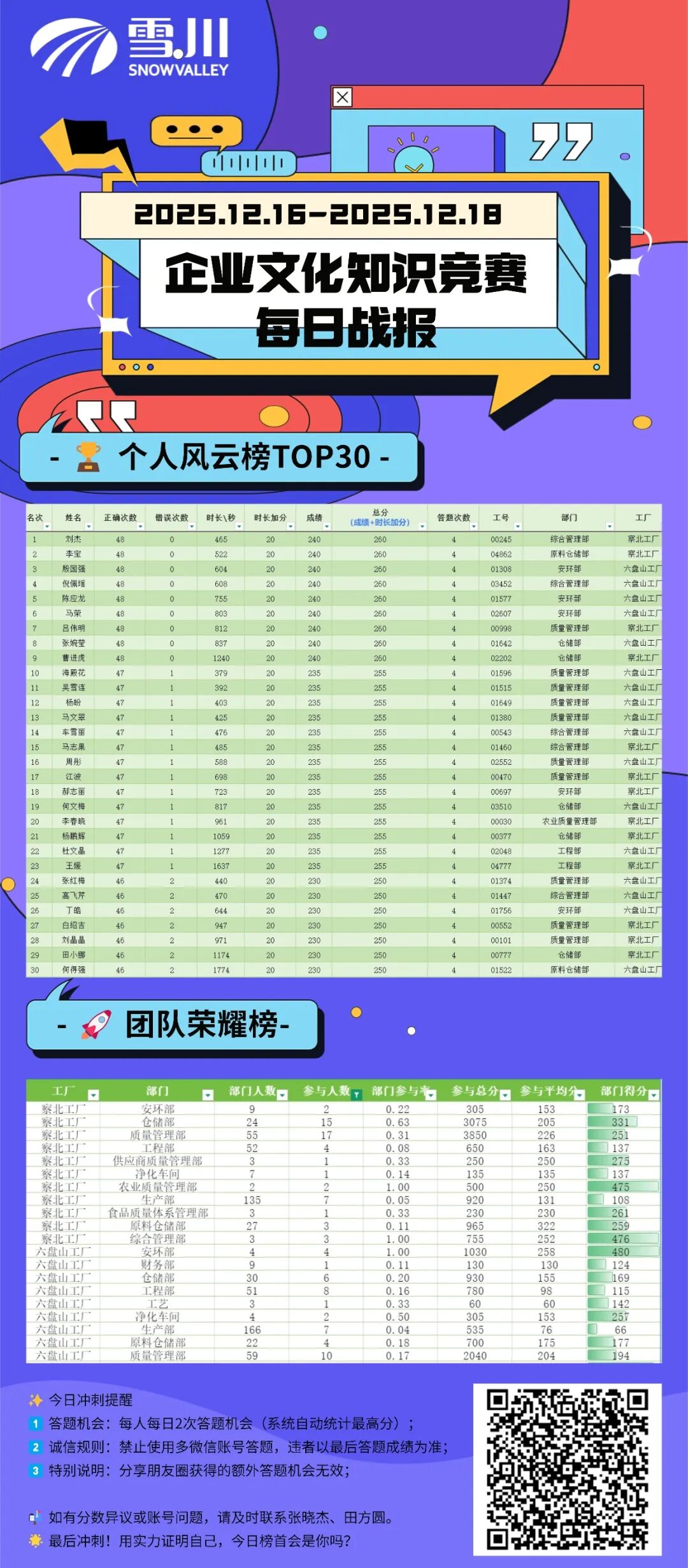 团队PK:六盘山工厂安环部以参与平均分416分斩获“最强文化天团”称号(奖金1000元已到账!)