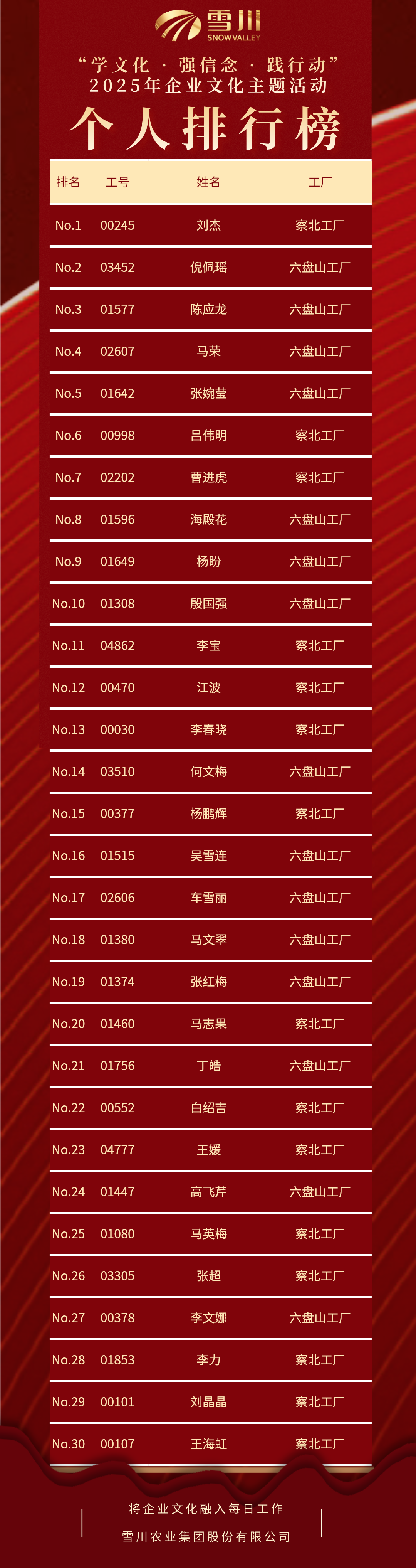 部门活跃度95%:察北&六盘山工厂各部门均有成员参与本次活动。