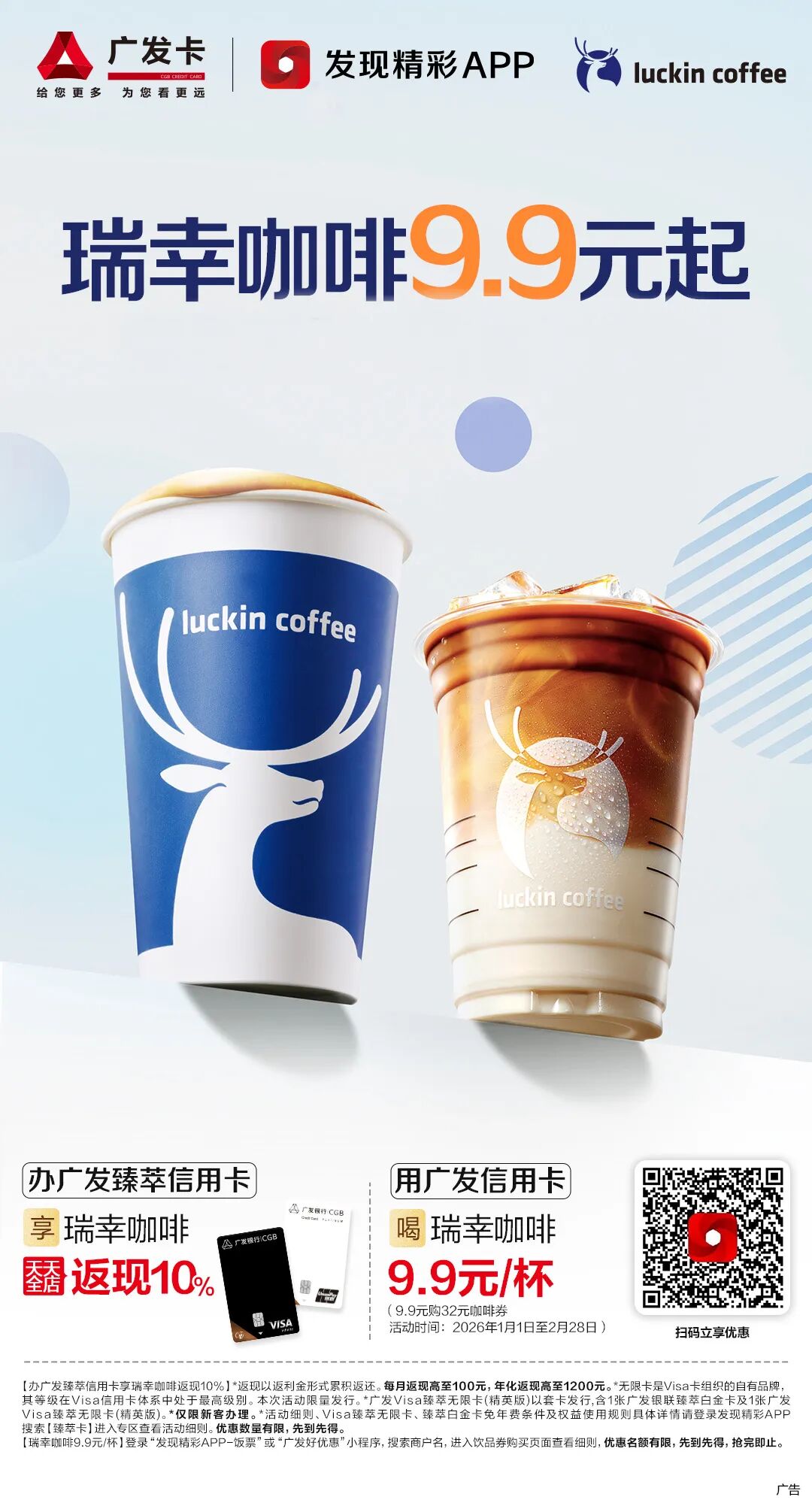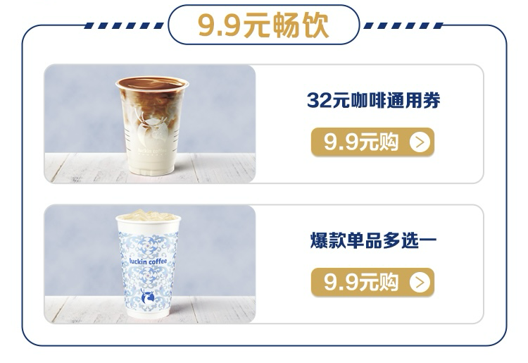 * 9.9元店庆券:是指瑞幸咖啡万店9.9元的常规活动,活动规则详见瑞幸咖啡APP或微信小程序,每人每周限领1次,领取后不可在其他渠道重复领取。