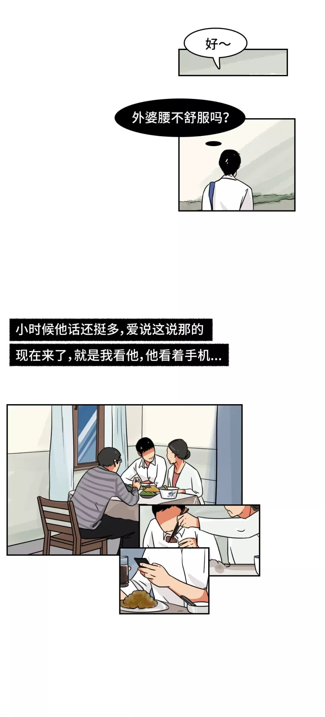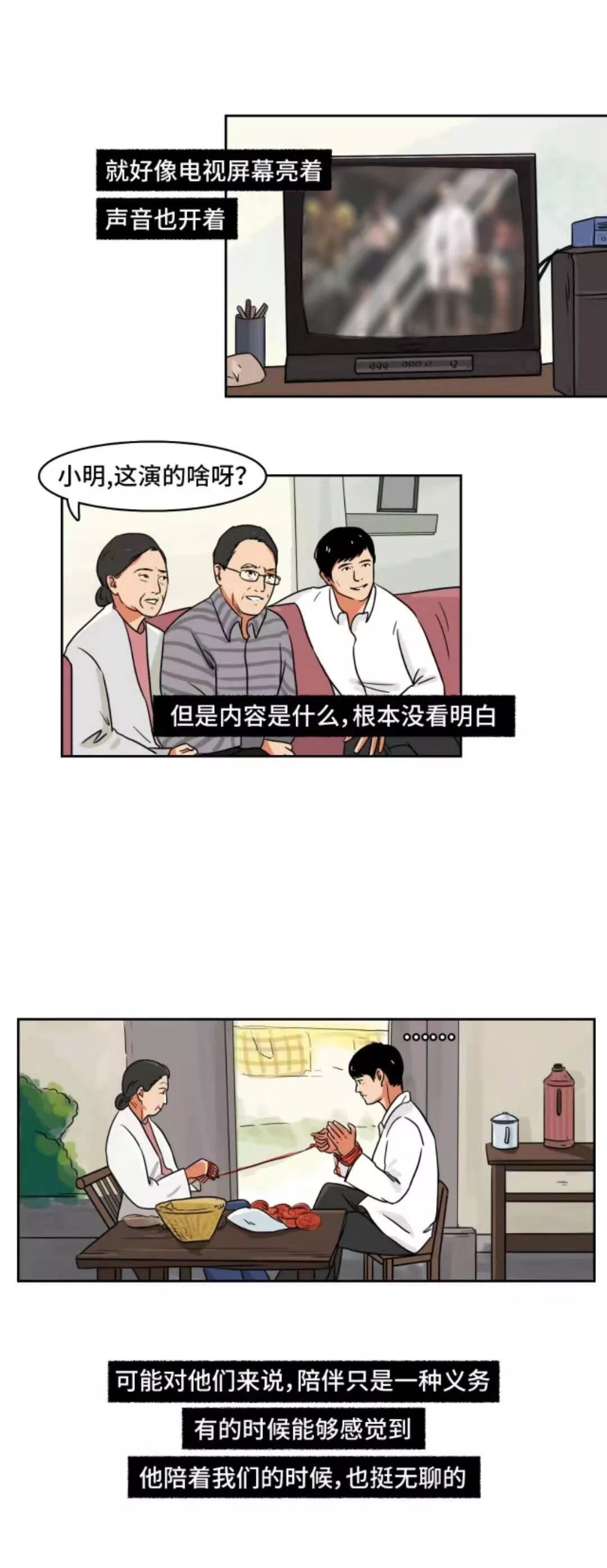 老人其实就是这样,小心翼翼地过着自己的生活,有很多事,他们都不想让你知道,总是怕麻烦、怕打扰,但你的一声问候都能让他们开心半天。