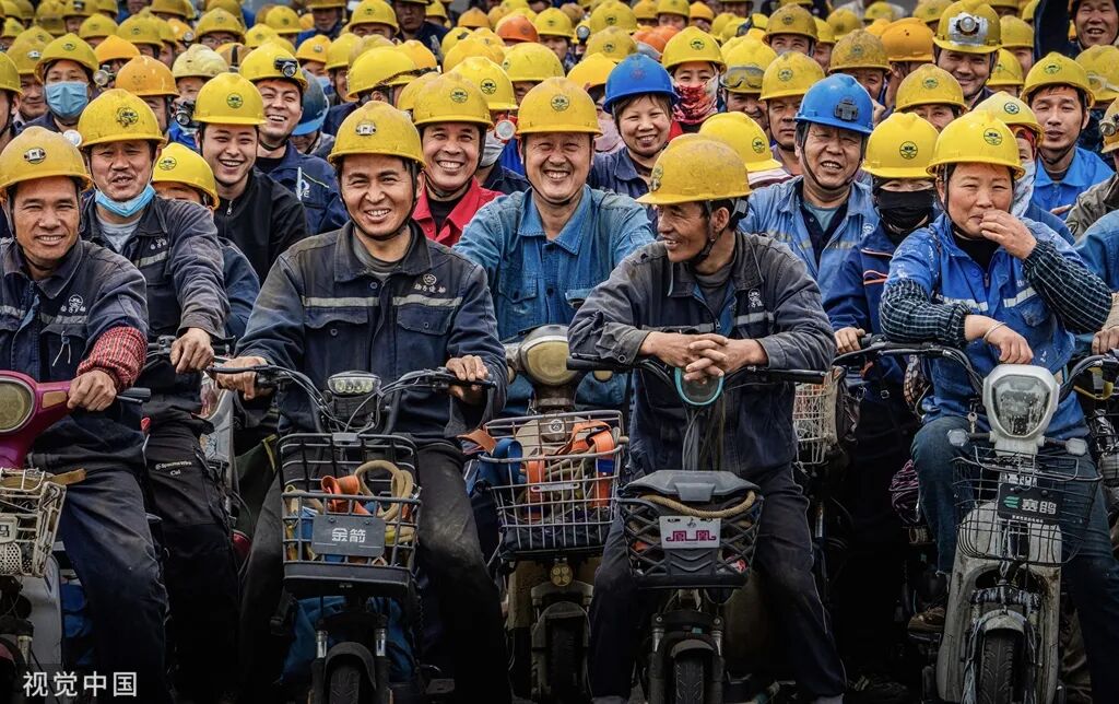 2025年4月22日,江苏泰州,江苏扬子鑫福造船有限公司,工人在下班时骑车离开厂区。泰州持续巩固全国规模最大、配套最完善民营造船基地的地位,多项先进技术走在了当今世界船舶制造业的最前沿。杨天民/摄