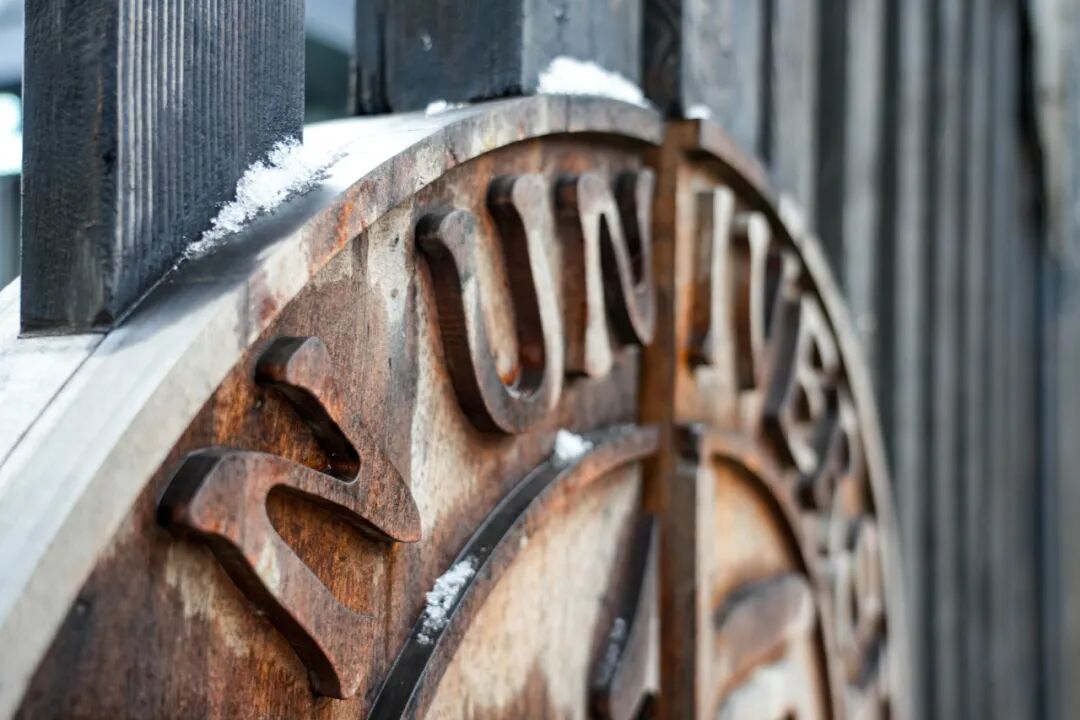 老校门巍然 石柱承雪