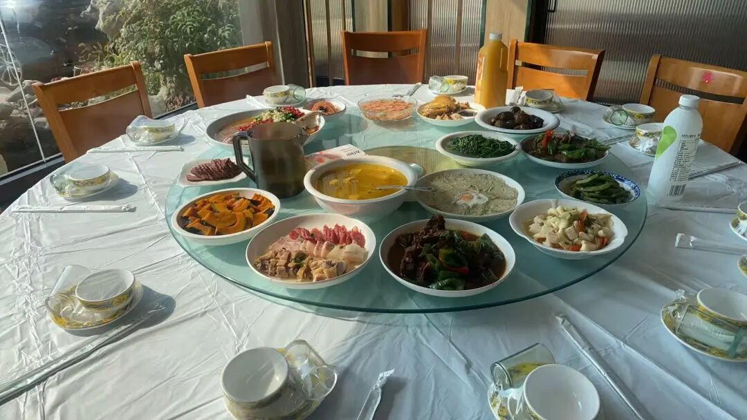 大家互相夹菜,有人抢着给伙伴剥虾,有人推荐 “这个红烧肉配米饭绝了”,热闹声里,米饭都多吃了两碗。