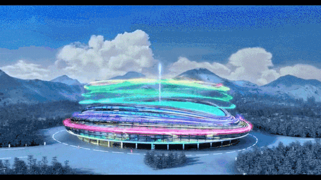 国家速滑馆又称“冰丝带(Ice Ribbon)”,冬奥会吉祥物“冰墩墩(Bing Dwen Dwen)”头部的彩色光环灵感也来源于此。