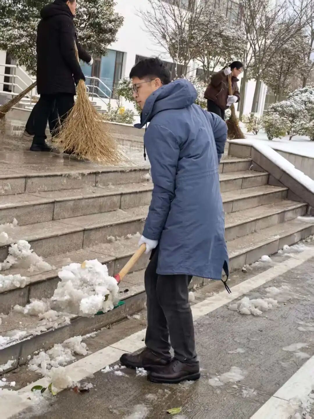 风雪中,他们手持工具