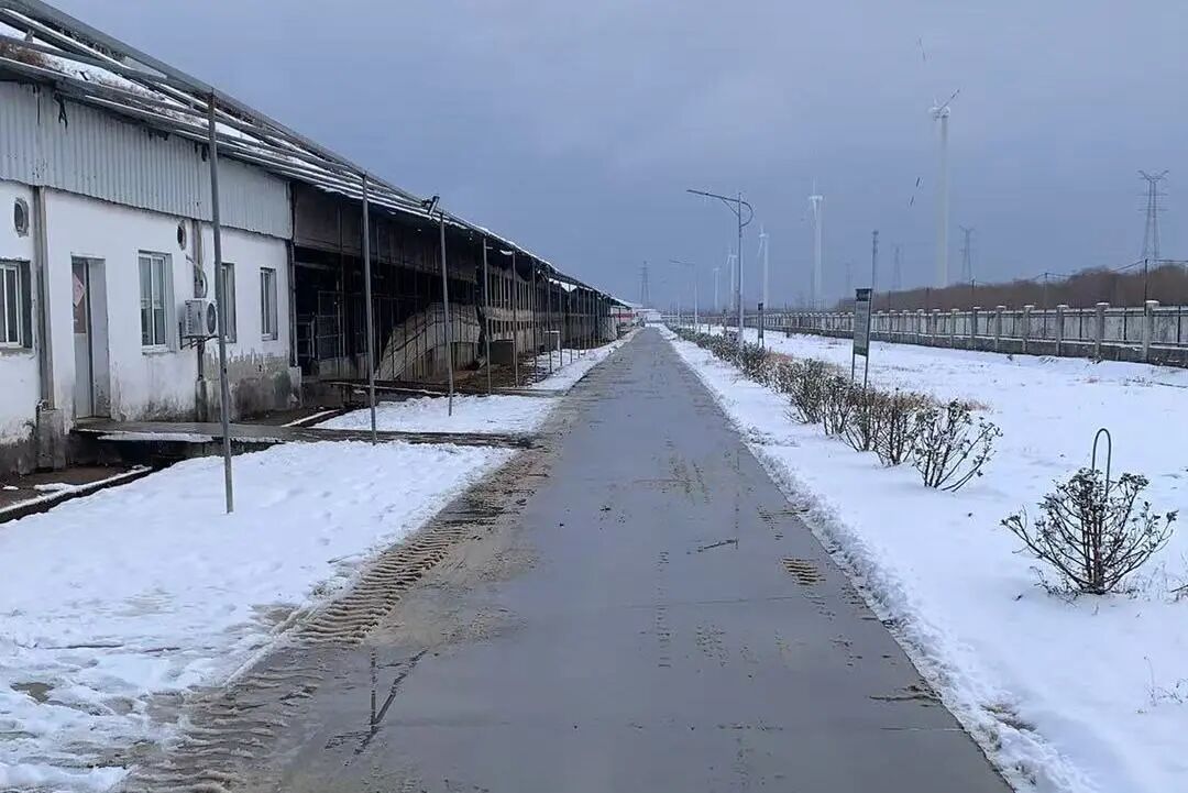 光明乳业的工厂、牧场也披上了银装