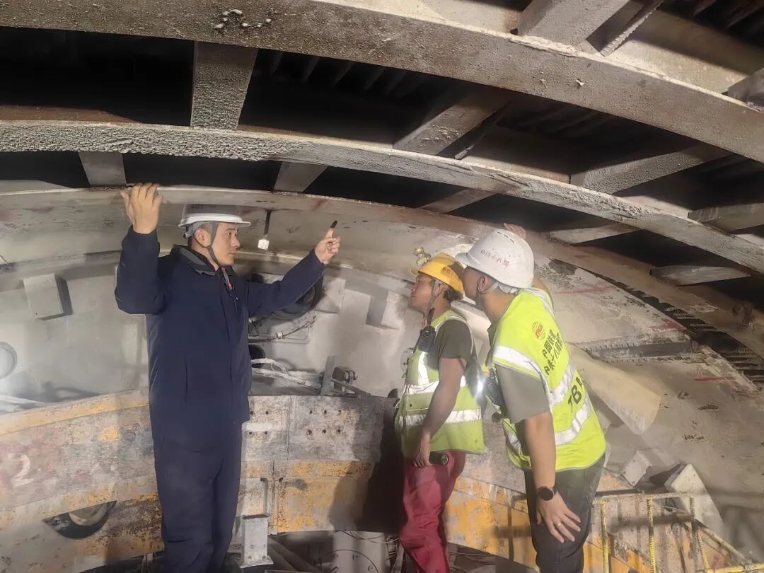 2023年8月,ABH项目隧道遭遇卡机难题,高鑫海主动带队攻坚,扎根前线导洞连续值守超36小时,严控管棚注浆质量。凭借多年经验,他创新提出“钻爆法+TBM工法”的“中西结合”方案,通过化灌、喷砼封闭等组合举措,成功穿越球状风化带与流沙状围岩,啃下硬骨头。