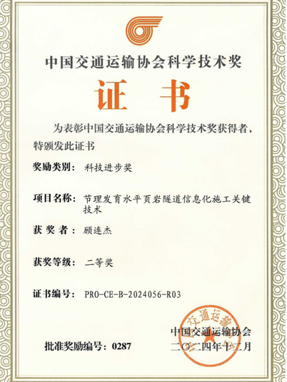 顾连杰深耕技术创新,针对隧道测量难题。他主持的科研课题荣获中国交通运输协会科学技术进步奖,参编团体标准1项,拥有2项发明专利,6项实用型专利,发表多篇独著论文,形成了一批具有推广价值的创新成果;他通过千次试验验证“多公共转点侧方交会法”,明确50米内短边使用0.5″全站仪可将方向误差控制在2″以内,该成果在公司隧道项目全面推广,显著提升贯通精度。