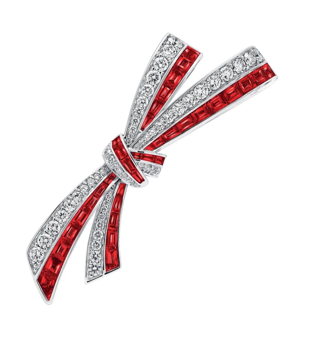 Graff格拉夫 Tilda's Bow系列圆形钻石及梯形红宝石胸针