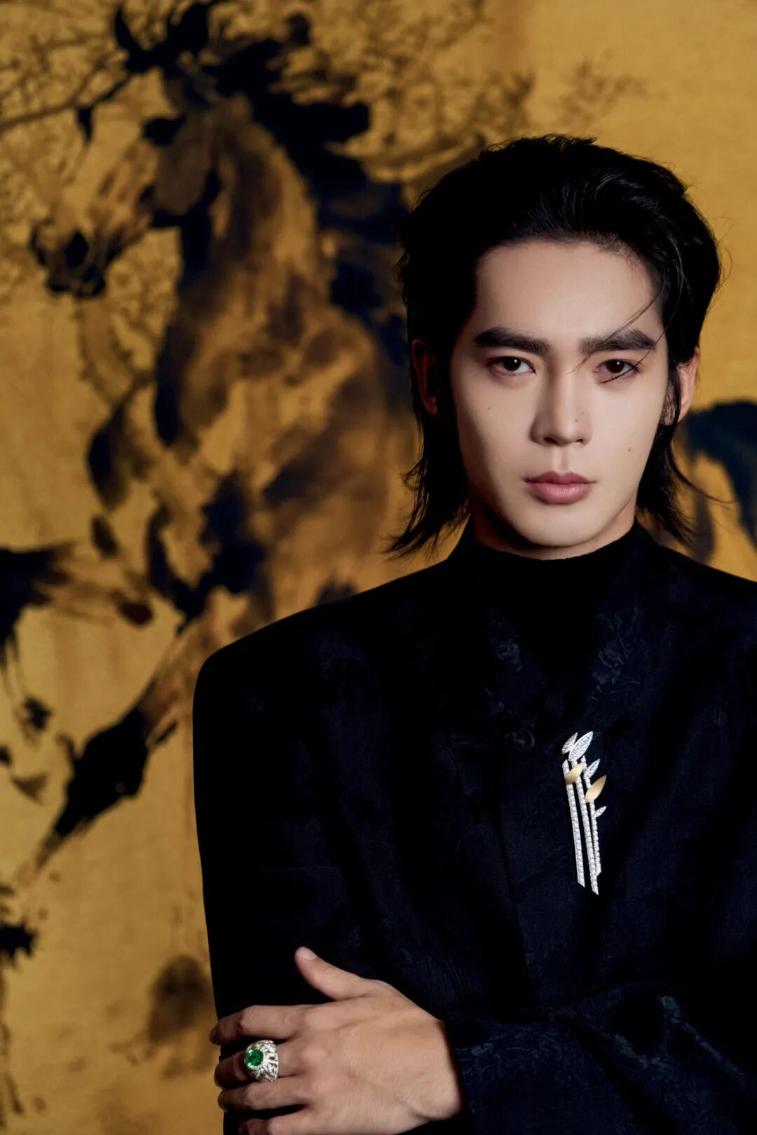 现象的背后,是消费与传播的双重驱动。男性珠宝市场持续扩张,胸针因其不直接接触肌肤的“低门槛”和位于视觉中心的“高曝光”,成为理想的入门与炫示单品。同时,在社交媒体上,一枚充满故事性的胸针所引发的解码热潮,其传播效能不亚于一套华服,它成就了造型的“记忆点”,也成为了粉丝经济中可谈论、可效仿的符号。