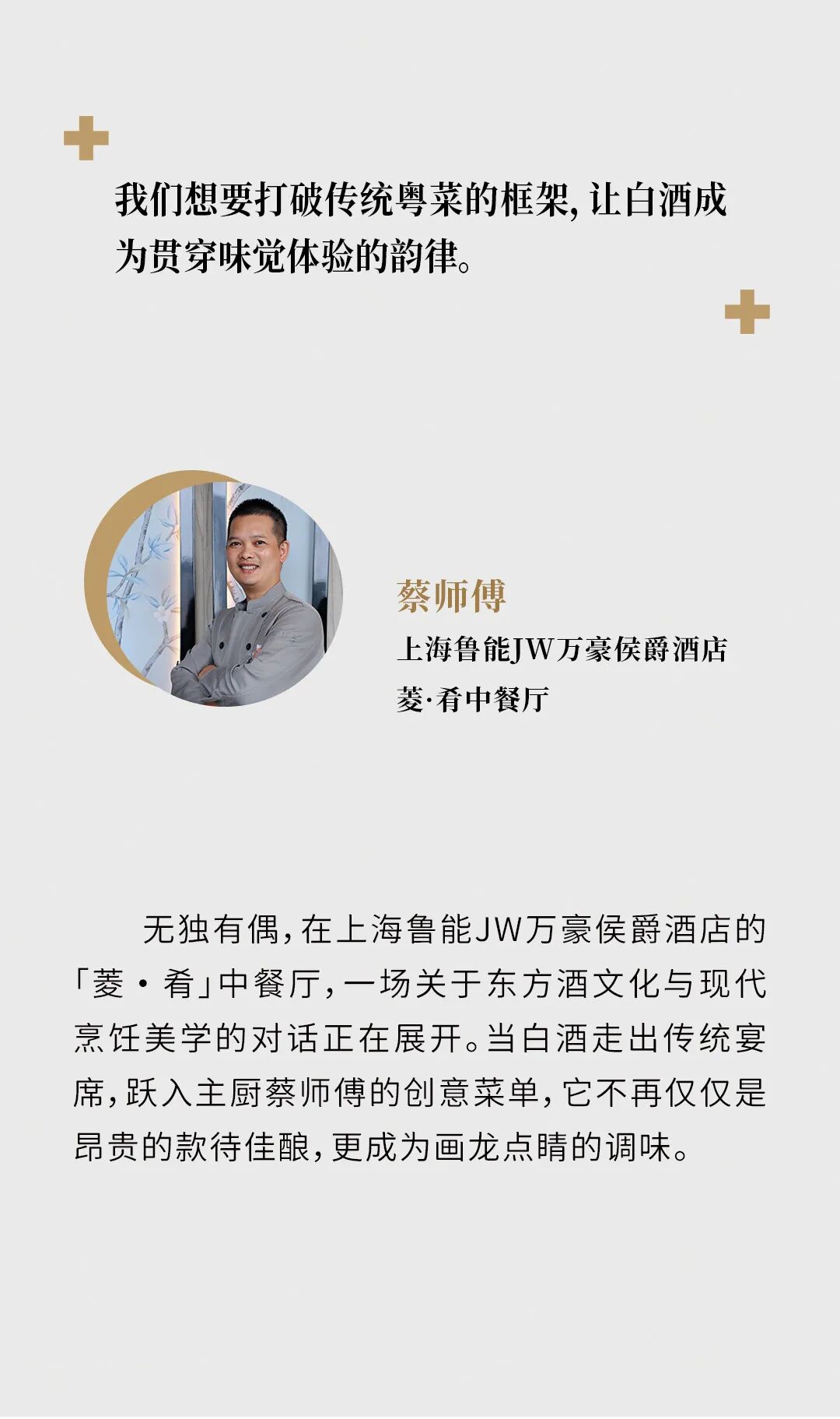 摘要:当白酒遇见米其林主厨、融入创意料理、在调酒师的手下化身特调鸡尾酒——这杯千年佳酿正以全新姿态走向世界。从风土解码到餐桌革新,一场关于白酒的味觉革命正在发生。