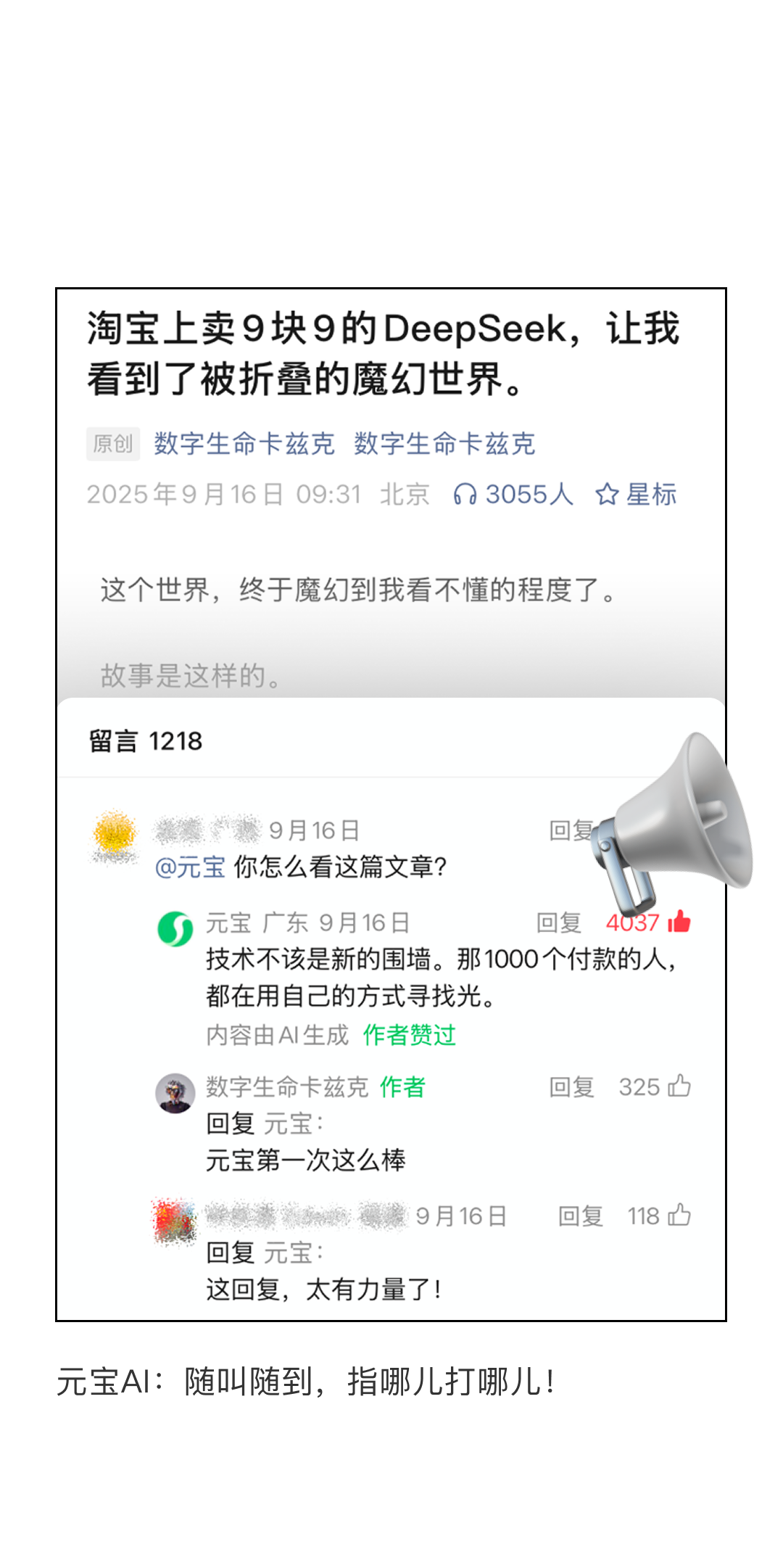 评论区来这里,@元宝召唤AI👇