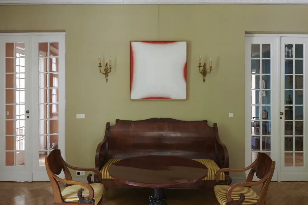 创作于1981 年的布面油画《画作 CDLIX 》挂在客厅的墙上,与空间有和而不同的奇妙。