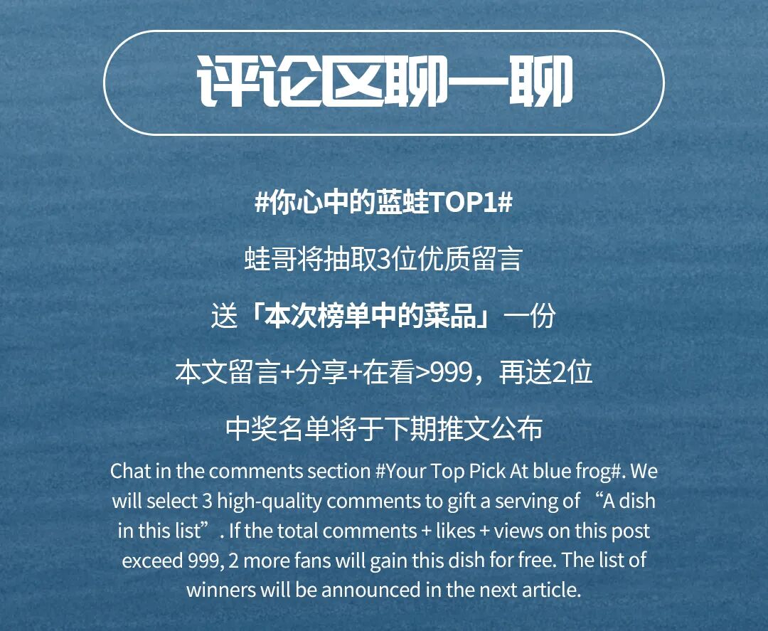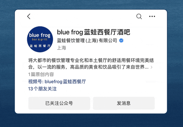文章内容来源于公众号:blue frog蓝蛙西餐厅酒吧,点此可查看原文,内容版权归相关企业所有,本网站仅供交流学习。若涉及版权问题或存在侵权情况,请及时与我们联系,我们将第一时间进行删除处理。