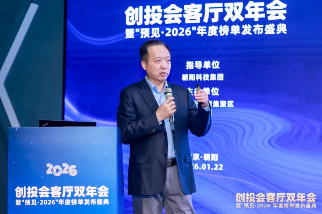 在这历史性的拐点上,一场汇聚中国顶尖创投智慧、前瞻未来产业脉搏的思想盛宴拉开帷幕——1月22日,由国际创业投资集聚区主办、小饭桌联合主办的“创投会客厅双年会暨‘预见·2026’年度榜单发布盛典”在北京举行。中国电子信息产业发展研究院工业经济研究所副所长、研究员张淑翠,工业和信息化部新闻宣传中心业务市场处处长陈鹏,北京科技创新促进中心副主任肖澜,北京科技创新促进中心副研究员师丽云莅临参会。北京市朝阳区政府党组成员、副区长、朝阳园党工委副书记、管委会主任娄毅翔出席活动并致辞,朝阳园管委会副主任宋再星出席活动。