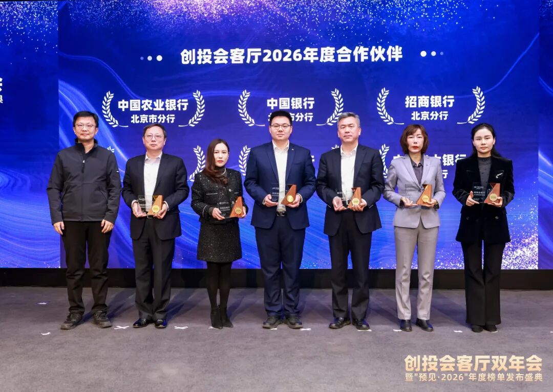 “创投会客厅”自2023年2月首期活动举办以来已走过100期的里程碑,累计入库企业1361家,成功推动105家参会企业获得融资,拉动约94.5亿元资金投向科技创新领域。活动现场还正式公布了“创投会客厅”2026年度合作伙伴阵容,宋再星登台为合作伙伴授牌。中国农业银行北京市分行、中国银行北京市分行、招商银行北京分行、中信银行北京分行、浦发银行北京分行、中国光大银行北京分行将以金融合作伙伴身份,为参会科创企业提供全面的金融产品服务支撑。