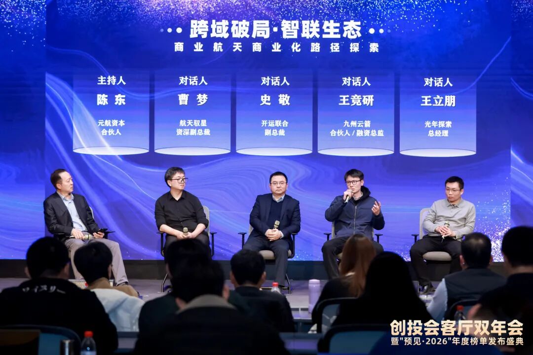 随后,在陈东主持的圆桌对话环节,他与航天驭星资深副总裁曹梦、开运联合副总裁史敬、九州云箭合伙人王竞研、光年探索总经理王立朋就商业航天技术突破、产业链协同以及投资机会进行了务实讨论。聚焦商业航天如何实现“高可靠、低成本”的规模化突破,嘉宾一致认为,传统航天的小批量定制模式正被批量化、工业化思维取代,如火箭回收复用、自动化卫星产线、跨行业材料工艺移植等皆是降本核心路径。展望未来,嘉宾看好太空算力、手机直连卫星、洲际物流等应用落地,认为中国商业航天将在国家战略与市场双轮驱动下,逐步构建从设施建设到生态繁荣的“星辰大海”图景。