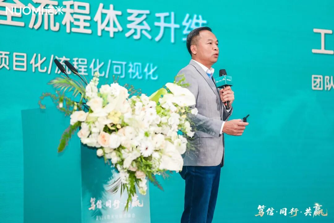 随后,诺米家居国内营销中心总经理曲锐系统阐述了2026年对经销商的全方位支持体系。他表示,公司将围绕 “以经销商盈利与发展为核心”,通过产品、动销与运营等多维赋能,帮助经销商提升市场竞争力与经营效率。