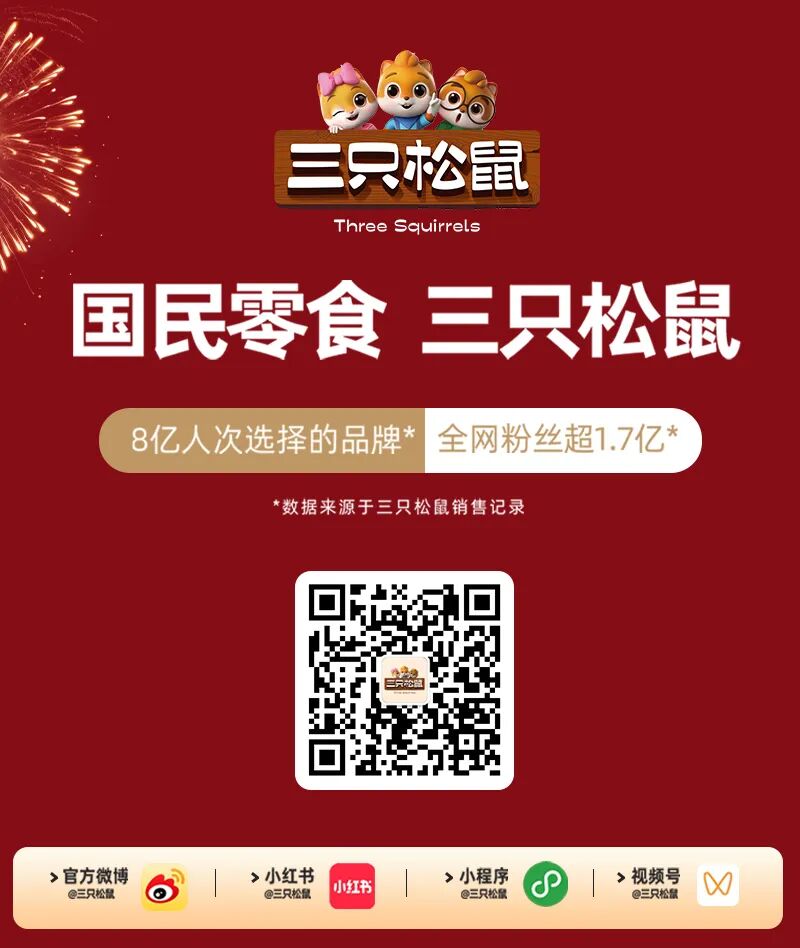 文章内容来源于公众号:三只松鼠,点此可查看原文,内容版权归相关企业所有,本网站仅供交流学习。若涉及版权问题或存在侵权情况,请及时与我们联系,我们将第一时间进行删除处理。