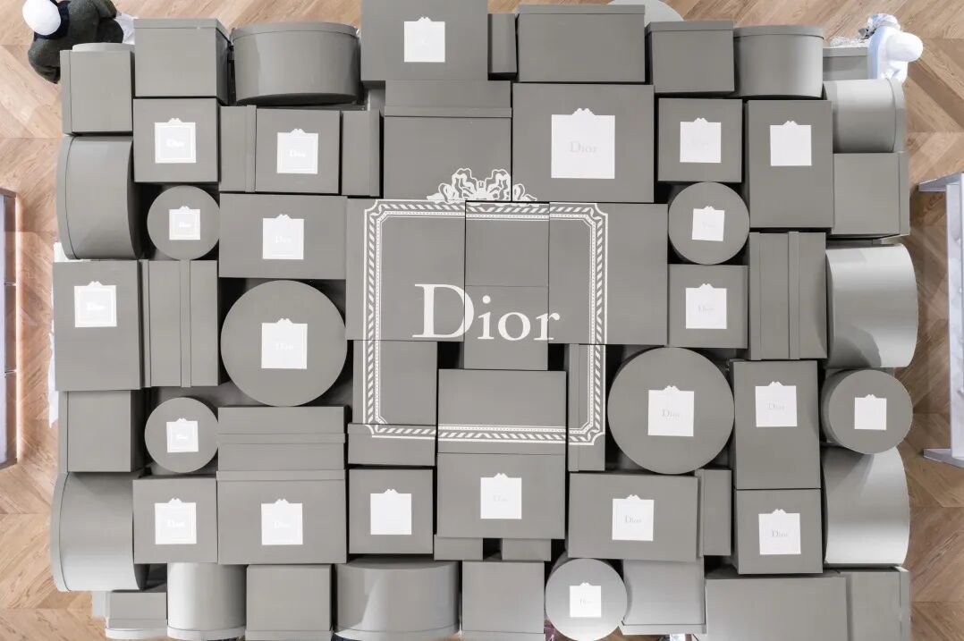 现场以迪奥时装屋历史上最初的礼盒为灵感