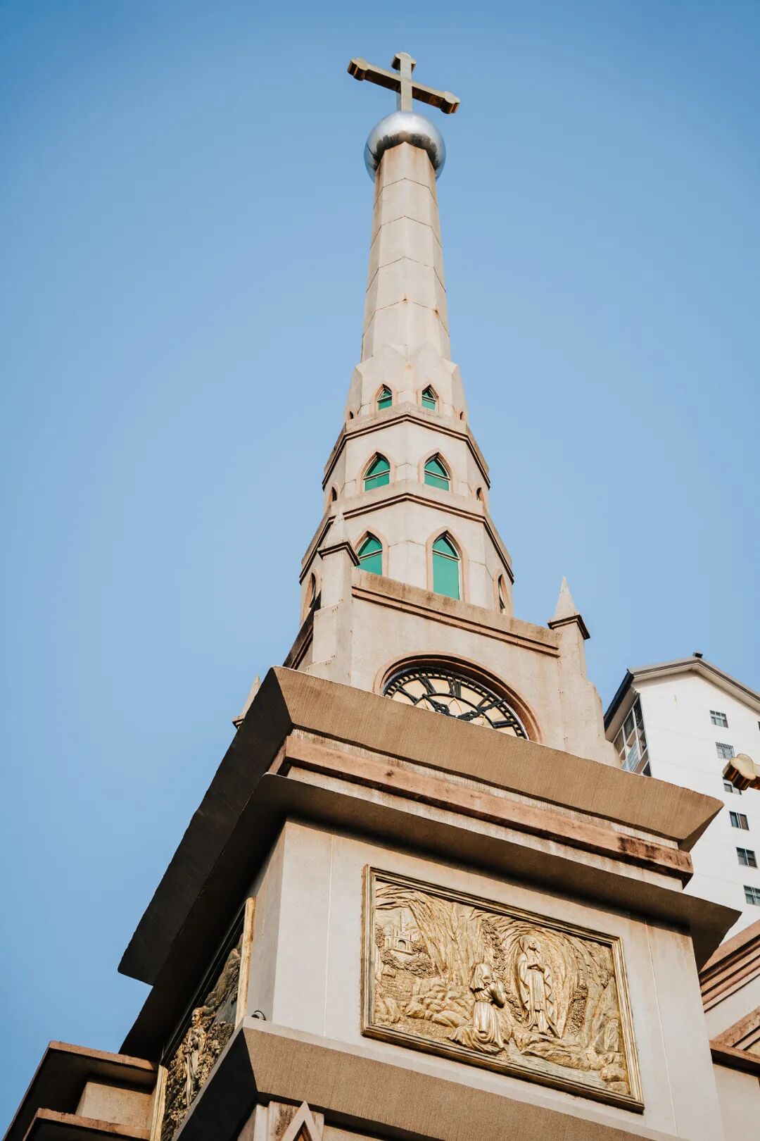 罗大佑歌中“关帝遥望天父”的场面,在这里不仅成为现实,还是双份。天福路上,天主堂和基督教堂与关帝庙成三足鼎立之势;不仅如此,圣弥额尔天主教堂附属的修道院屋顶,赫然露出背后天后宫的燕脊;基督教世光堂的十字架,全天候遥望它的,正是旁边祭祀揭阳本土武状元的福德庙上的人物嵌瓷;不远处还有座小庙,庙主干脆就是那棵古老的榕树……多元信仰在狭小空间内的和谐共生,正是在地潮汕文化包容开放的自信体现。