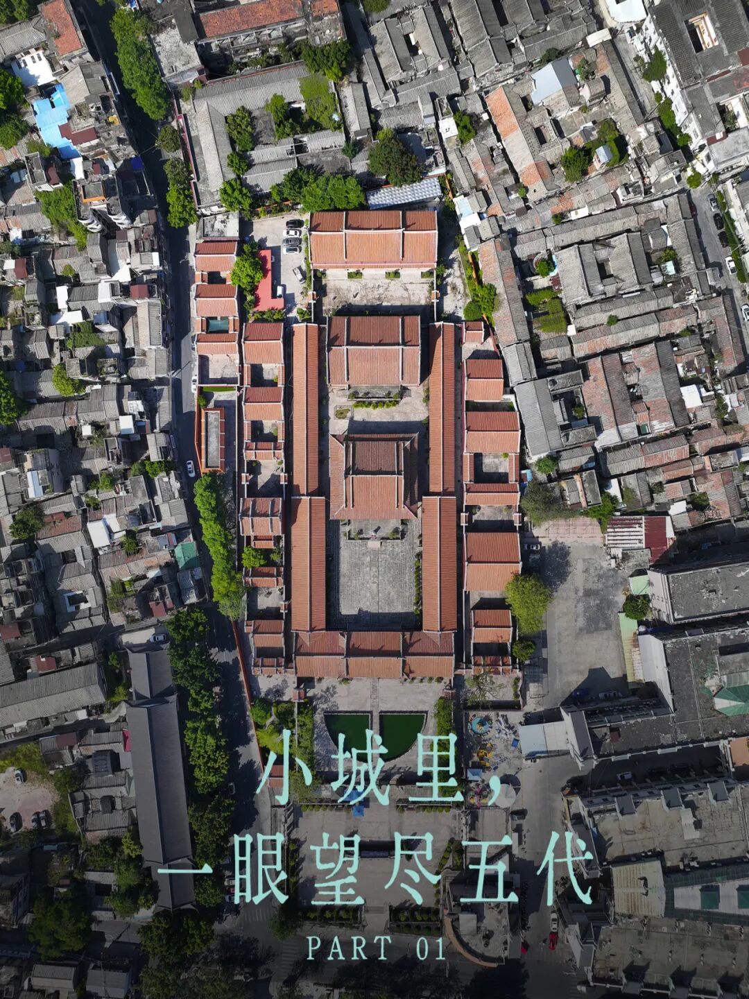 东门里的郭氏是老城的葫芦脐,位于西北城角的丁府则是葫芦嘴。作为清代洋务运动第二代领袖、清代四大藏书家之一的丁日昌,其故居比郭之奇金马玉堂的“驷马拖车”,又要多出一圈“下山虎”围绕——这种格局,细数下来一般是99间房屋加一座更楼,因此形象地称为“百鸟朝凰”,是潮汕建筑的最高级别。左右两路皆是三进的“下山虎”院落,和中路的门厅、前厅、后院,起居、藏书、家族教育功能齐备,如同百鸟;“凤凰”C 位上自然是祠堂;而河道边那两座作为水陆码头的耳房就是“两点”,让整座建筑完美地构成“興”字。