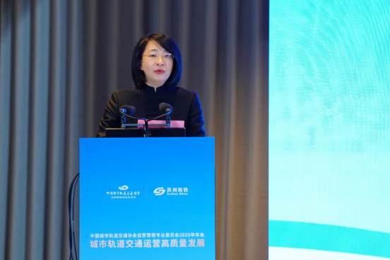 金铭代表苏州轨道交通集团,对参会领导、嘉宾的到来表示欢迎。她表示,近年来,苏州地铁在市委市政府的坚强领导下,在行业协会和兄弟单位的大力支持下,建成开通8条市内线路与1条市域线路,总里程346公里,日均客运量近200万人次,公共交通分担率达到70%,乘客满意度连续12年稳步提升,全自动GOA4开通里程数202.2公里居全世界领先水平。苏州地铁始终严守安全、坚持精研服务、传递城市温度,愿与各兄弟单位一道,在中城协的指导下,共同推动运营管理向高效化、精准化、可靠化、融合化转变,以实际行动为公共交通事业发展贡献力量。